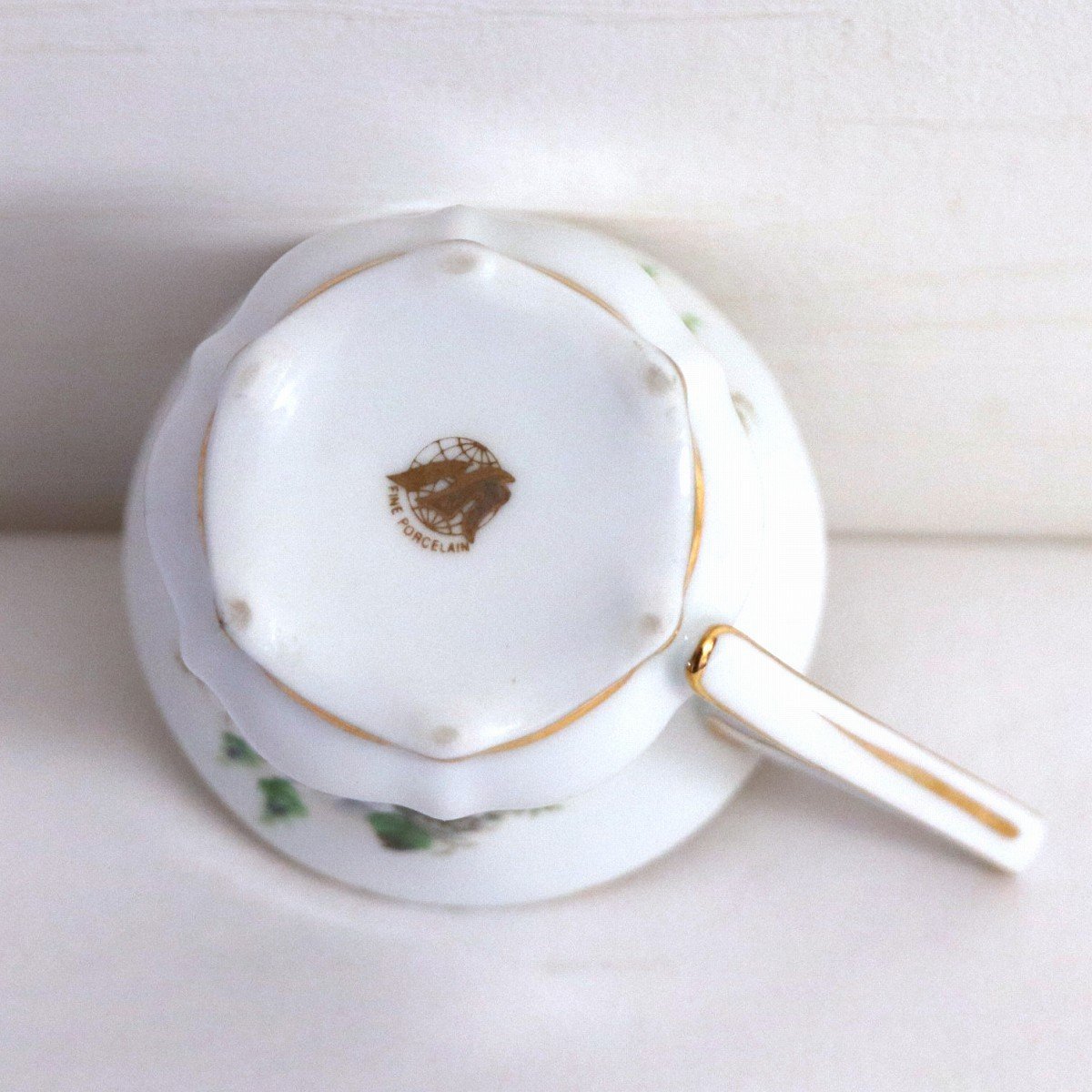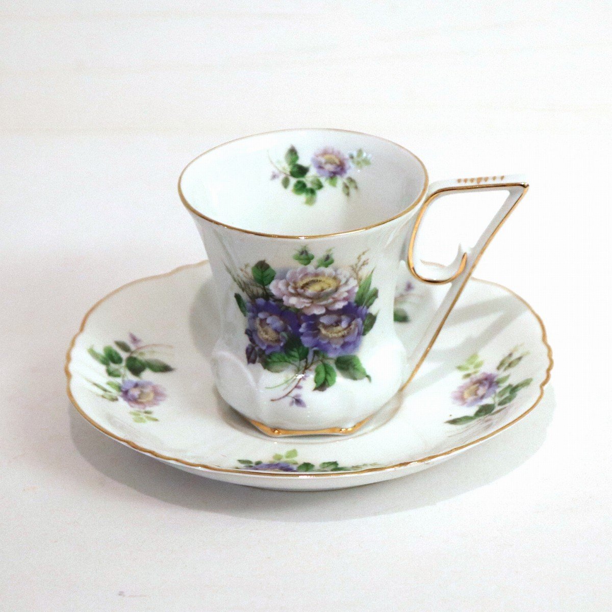 花柄カップ(直径:約72㎜、取っ手込み:約100㎜、高さ:約71㎜)、花柄ソーサー(直径:約140㎜、高さ:約23㎜)、状態ランク:B