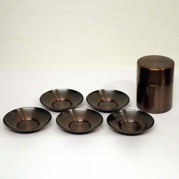 茶托(直径:約107mm、高さ:約16mm)、茶筒(直径:約87mm、高さ:約118mm)、茶托・茶筒ともにキズあり。状態ランク:D