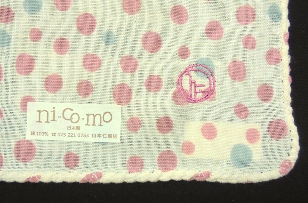 【説明】 nicomoシリーズのハンカチです。 二重ガーゼの柔らかい触り心地です。 折りたたんでマスクにもいかがですか? 右下にはロゴマークの刺繍をしています。 サイズ:約 37×37cm 素材:綿100% 日本製 ※こちらの商品は、職人による手作りとなります。 その為、形や色など若干異なる場合がございます。 あらかじめご了承ください。 ※生成り生地ですので生地に黒い斑点模様がございます。 ☆他にもたくさん出品しております!是非ご覧下さい!☆ 商品及びその他の内容でご不明な点がございましたら、遠慮なく質問下さい。 |