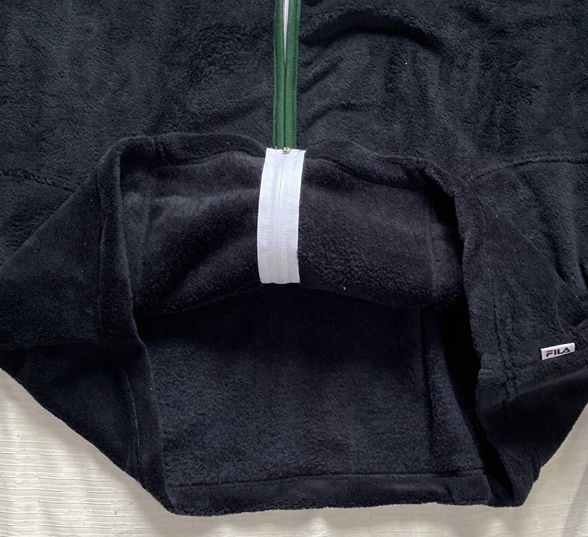 FILAのフリースジャンバー LL 黒色グリーンライン系  身長175cm~185cm 胸囲104cm~112cm 肩幅60cm 身丈76cm 身幅66cm 裄丈88cm   ・未使用ですが保存期間長いため品質保証出来ませんので了承の上で落札ください! ・品質保証、シミ、キズ、汚れ、シワ、アタリ、小さなほつれ、作動しない等の難がありましてもノークレームノーリターンを了承の上で必ず落札してください、どのような理由にかからわず返品返金は一切できません。