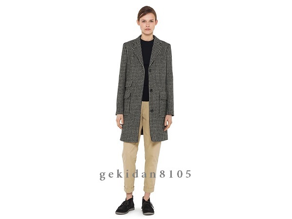 SHADOW HOUNDTOOTH ロンドンコレクションのランウェイにも登場した マーガレットハウエルでも人気の高い、 ハウンドトゥース柄のシティコートです。 シーズンを象徴するキーアイテムとして、 シーズンカタログをはじめ、キャンペーン広告にも起用されるなど、 発売前から大きな注目を集めました。 シティコートのスタイルは マーガレットハウエルさんもお気に入りのデザインで、 これまでのコレクションにも数多く登場しており、 マーガレットハウエルさんがご自身でも愛用されているコートです。 ツイードで有名なアイルランドのサプライヤーの上質な素材を贅沢に使用した 見た目にも高級感あふれるアイテムで、 マーガレットハウエルらしい上品で洗練された ワンランク上の大人のオシャレを演出してくれます。 ブリティッシュモダンスタイルの王道とも言える エレガントかつクラシックな雰囲気漂う、 コーディネートの主役になる極上の一着です。 比翼仕立てでフォーマルな雰囲気を残しつつも、 大きなフラップポケットがアクセントになっていて、 きちんと感とほどよい抜け感のあるバランスが絶妙な ブランドを代表するアイコン的なデザインに仕上がっています。 総裏仕立てなので着心地の良さはもちろん、 防寒性にも優れています。 タイムレスにご着用いただけるデザイン・カラーで、 オン・オフ問わず様々なシーンに活躍する 一着持っていればどこへ行っても恥ずかしくない 大切にケアしていけば一生モノとしてご愛用いただけるアイテムとなっております。 定価も約10万円と高いプレミアムな商品ですので、 上質なコートをお探しだった方、買い逃してしまった方はぜひ。 コンディション:試着程度 ※フロントのチェンジポケットのしつけ糸が付いたままの状態です。 カラー:BLACK / NATURAL サイズ:2 着丈:約87cm 肩幅:約39m 身幅:約50.5cm 袖丈:約60.5cm 内ポケット × 2 素材:表生地 ウール100% 裏生地 身頃部分 ポリエステル 65% コットン35% 袖部分 キュプラ100% 定価:99,360円 | ||
