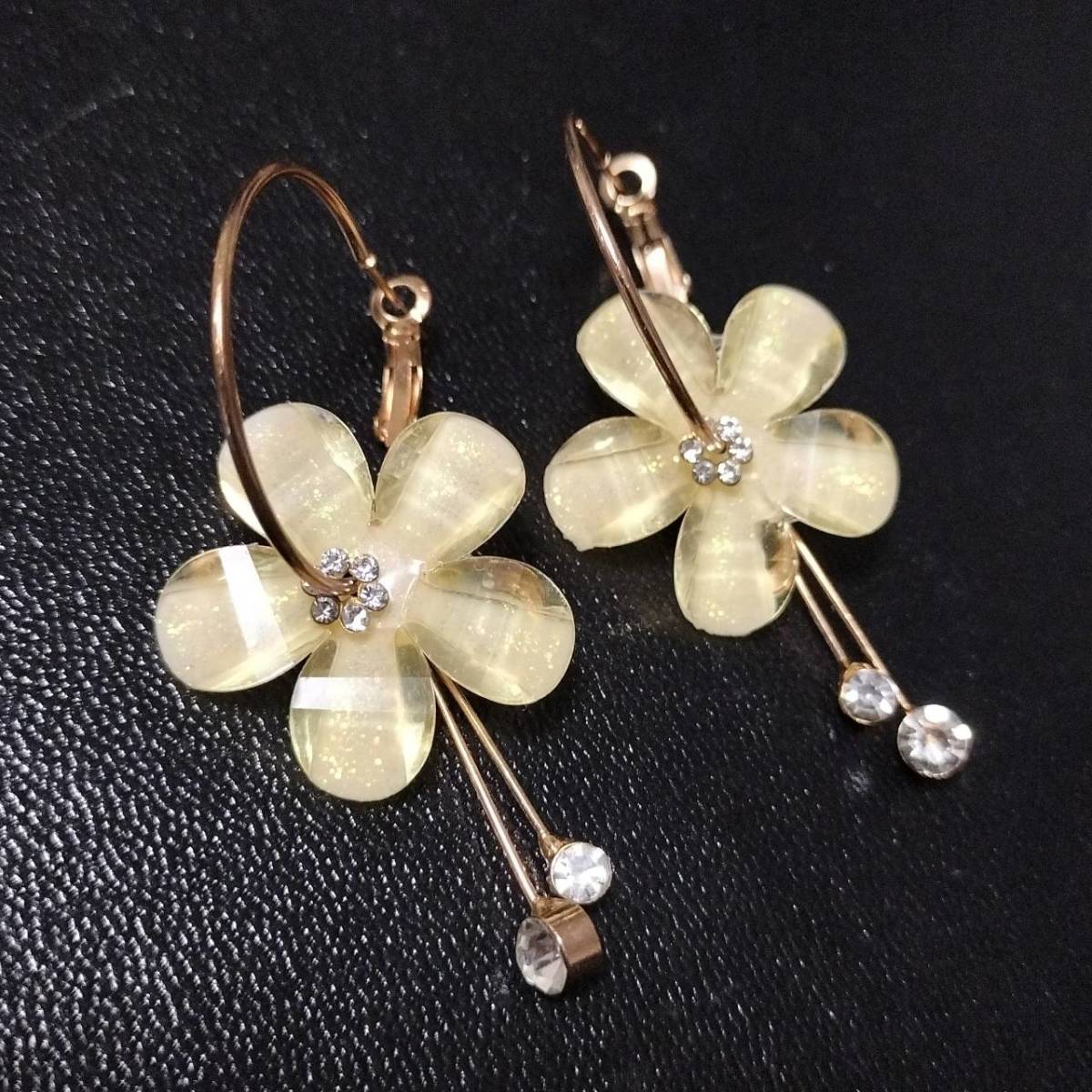 新品未使用 ピアス ゴールド 花 フラワー cz 大ぶり フープ クルクル レディース 韓国 はな ハナ キュービックジルコニア #D60-2