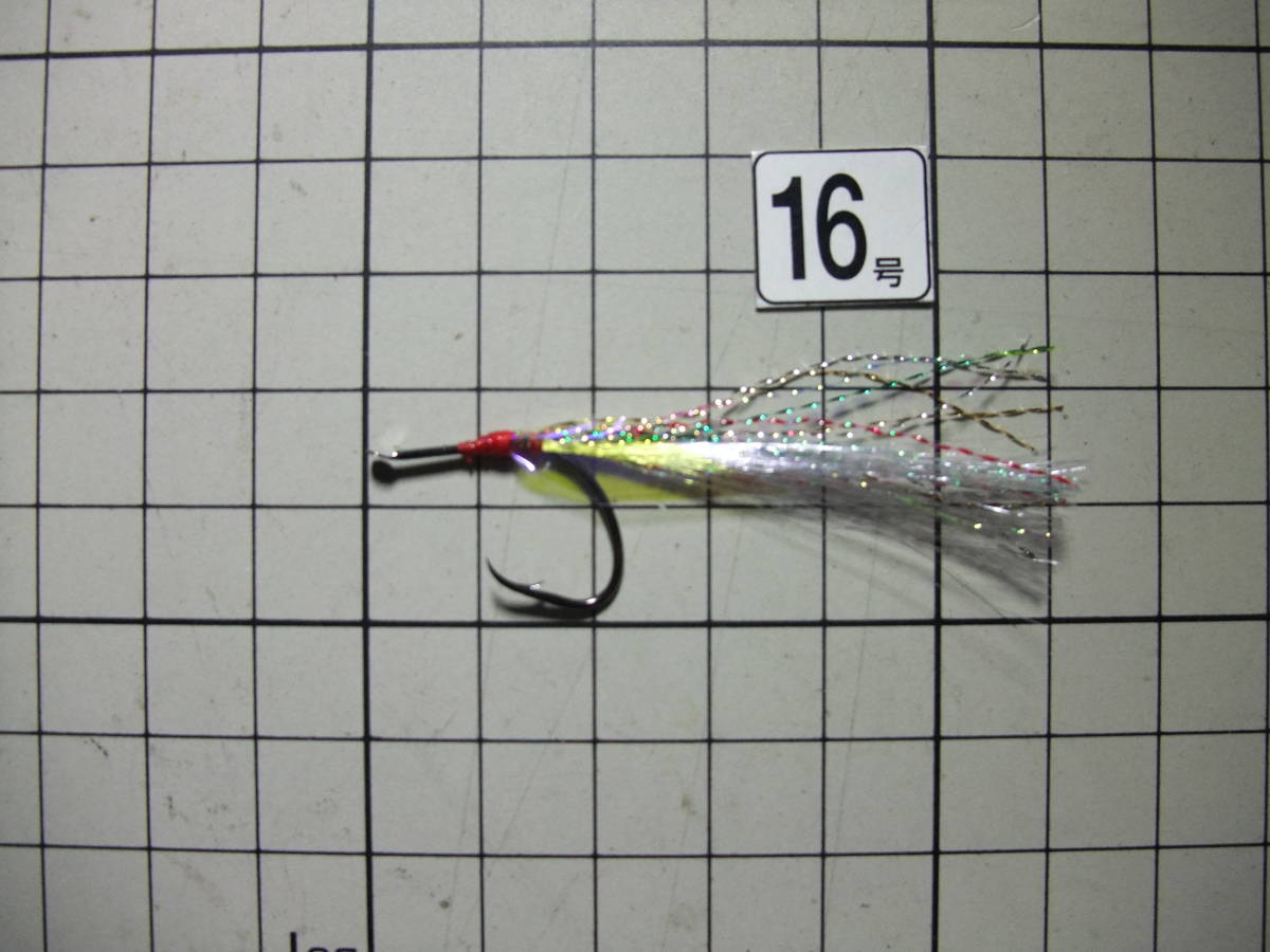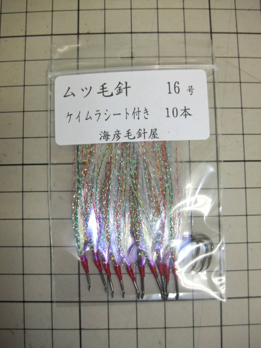 16SK ムツ16号毛針 白ケイムラフラッシャー ケイムラシート付き 10本入れ