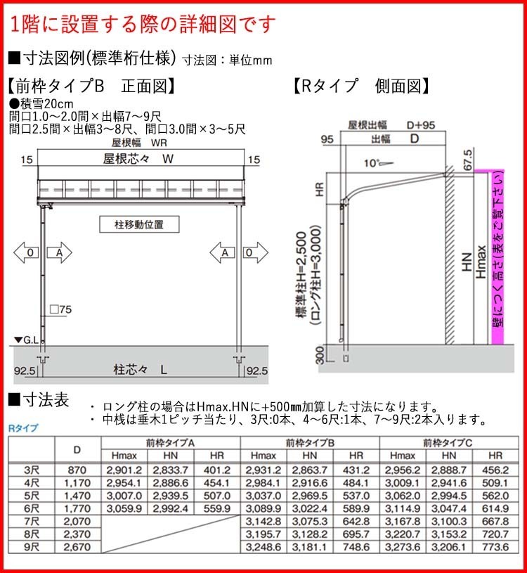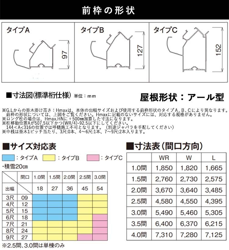 サイズ | 2.0間(屋根外寸3,670mm)×8尺(出幅寸法2,465mm) | |