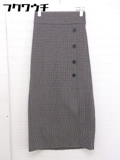 ◇ mystic ミスティック ウエストゴム チェックスリット ロング ナロー スカート サイズ F グレー系 レディース
