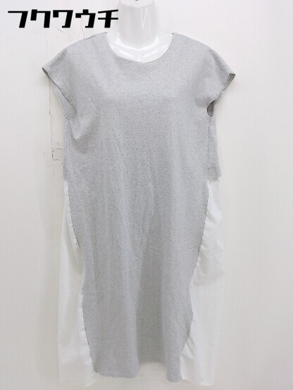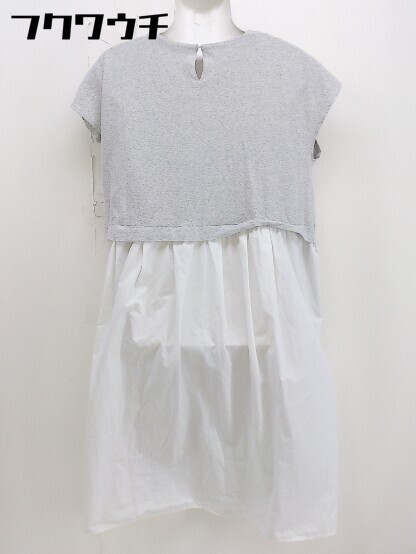 ◇ nano universe ナノユニバース 切替 フレンチスリーブ 膝下丈 ワンピース サイズ F グレー ホワイト レディース