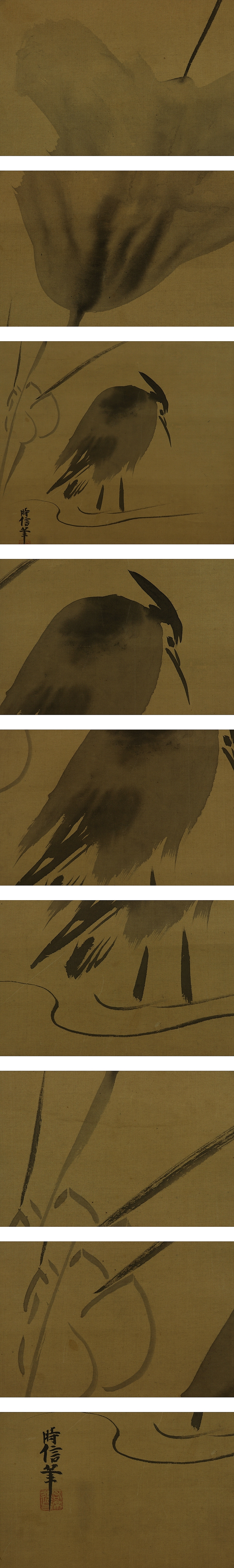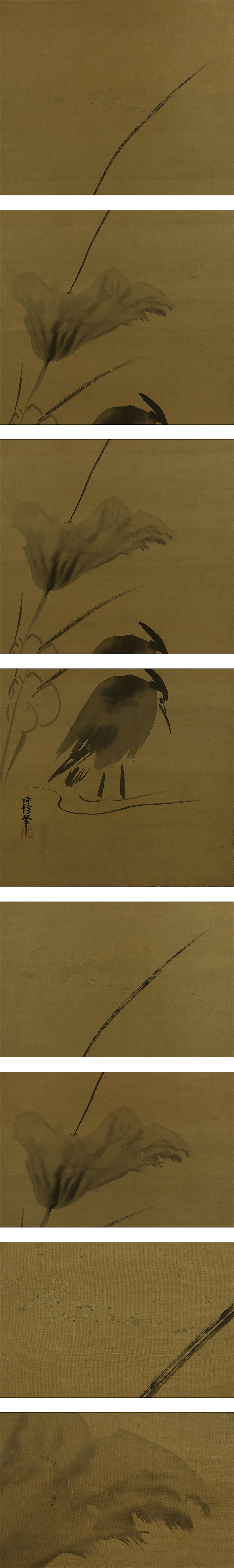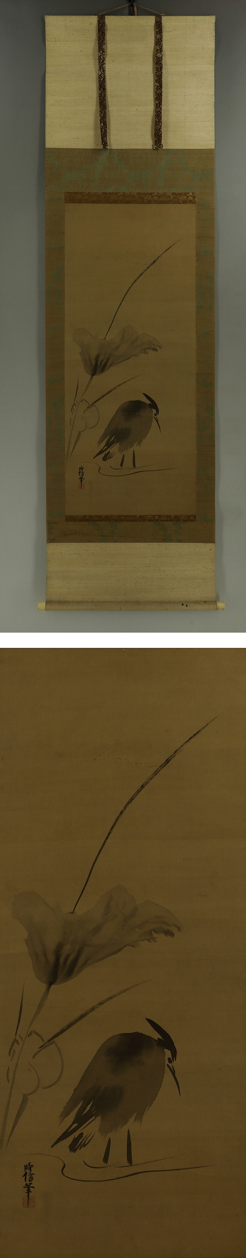 | №2401089【模写】狩野時信【蓮鷺図】◆絹本◆合箱◆掛軸 | |