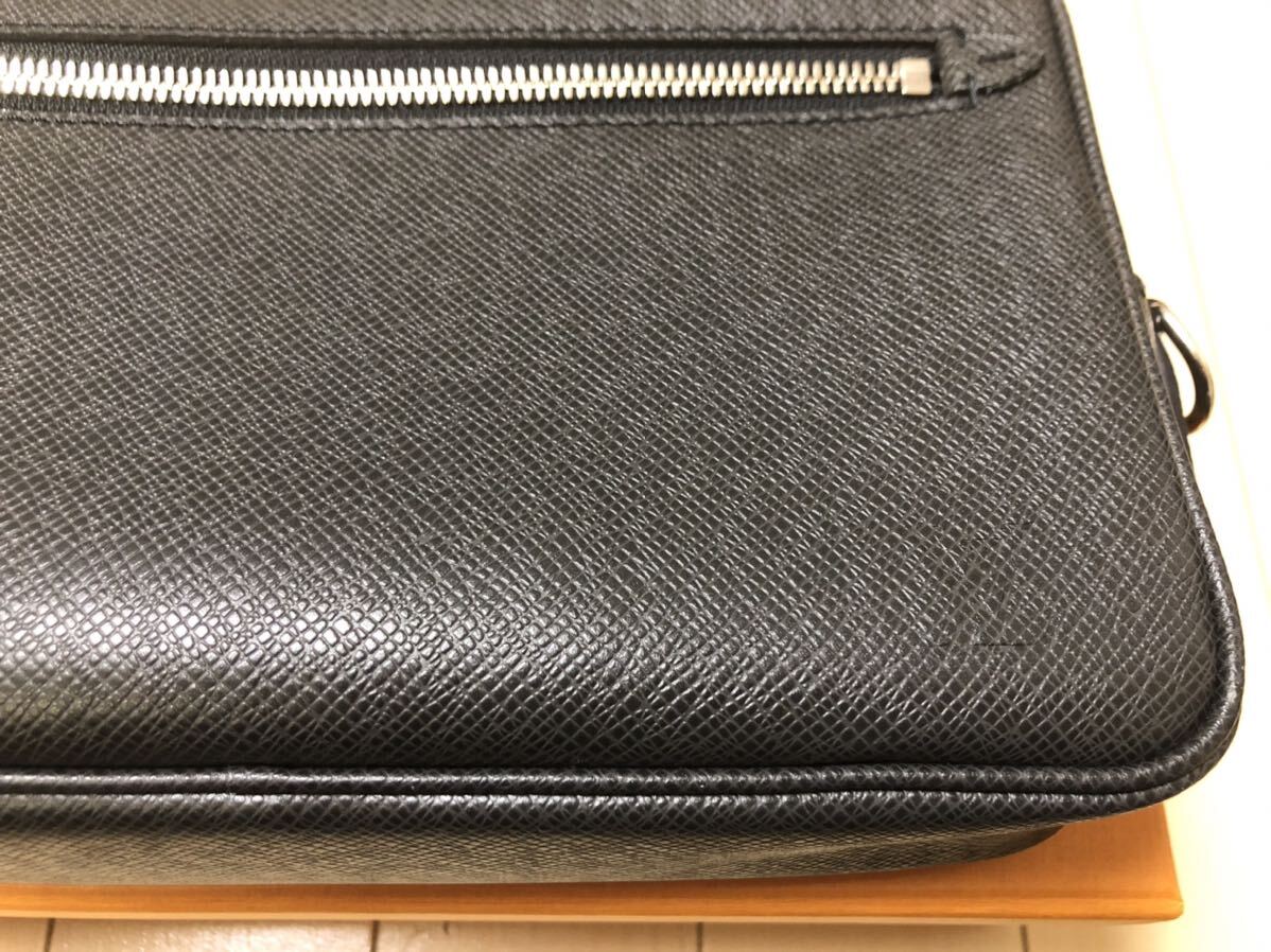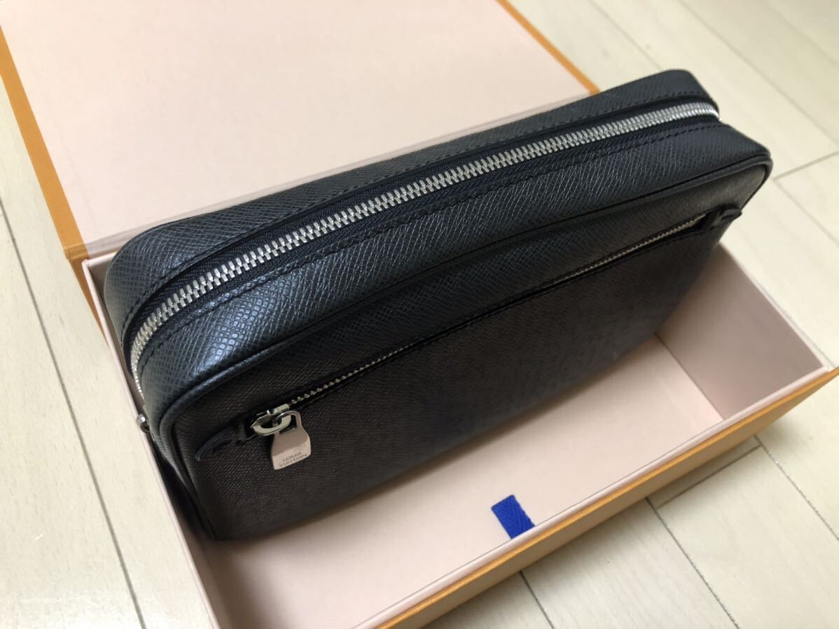 上質なレザーに細かな型押しを施したしなやかな手触りが特徴のタイガ・レザーを使用したバッグ。シックな外装に「LV」ロゴの刻印がさりげないアクセント。マチがしっかりあるコンパートメントに複数のポケットを備え、収納力は抜群。リストストラップが付属しているので手持ちのクラッチやセカンドバッグ、ポーチとしても活躍します。