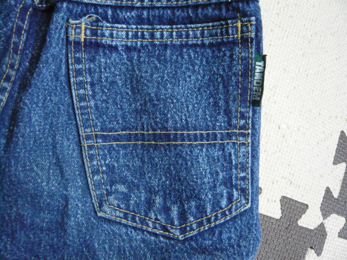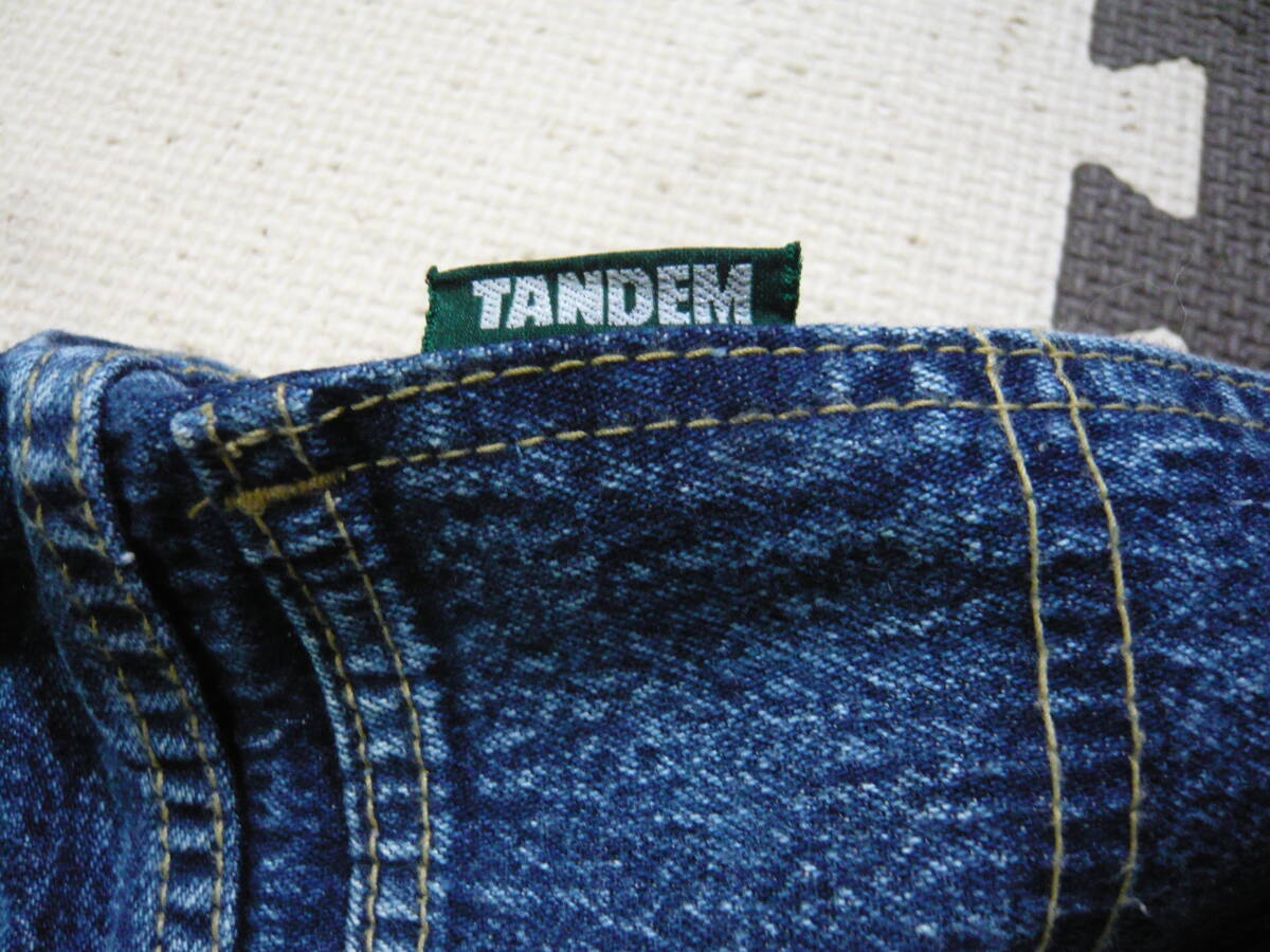 TANDEMのデニムジーンズ 生地は綿100% 日本製 サイズ表記は130 身長125~135 胴囲53~59 股下は56、裾幅13センチです。穴あきや破れ等のダメージはありませんが着用品になりますのでご理解の上入札お願いします。気になる方は入札ご遠慮ください。ノークレーム、ノーリターンでお願いします。
