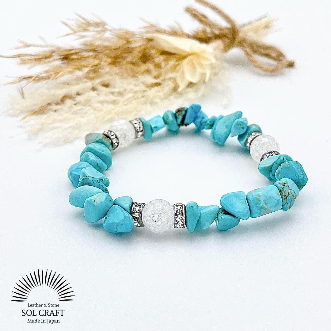 ターコイズ さざれ石 クラック水晶 3つ 天然石 ブレスレット パワーストーン レディース メンズ ユニセックス 新品 未使用 送料無料