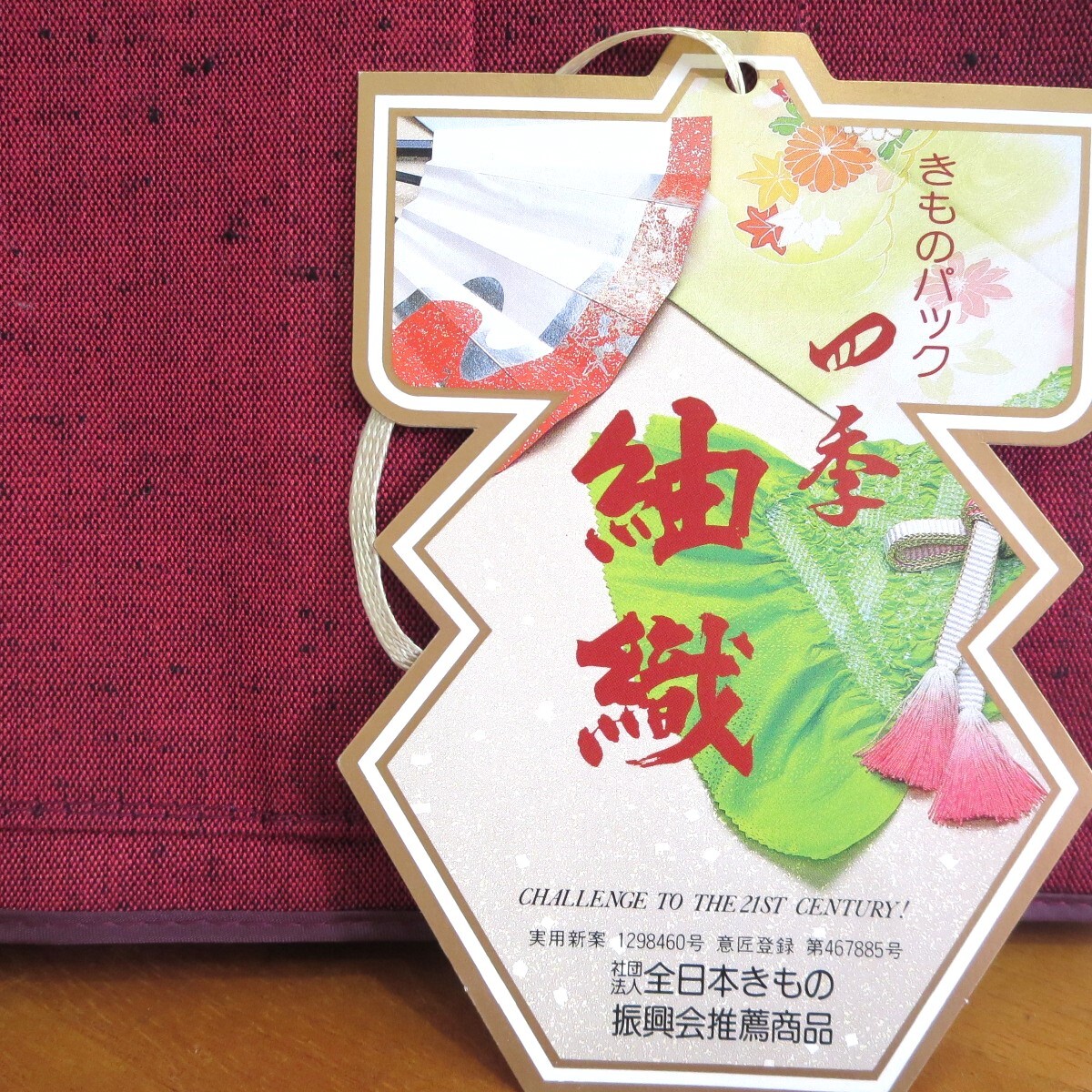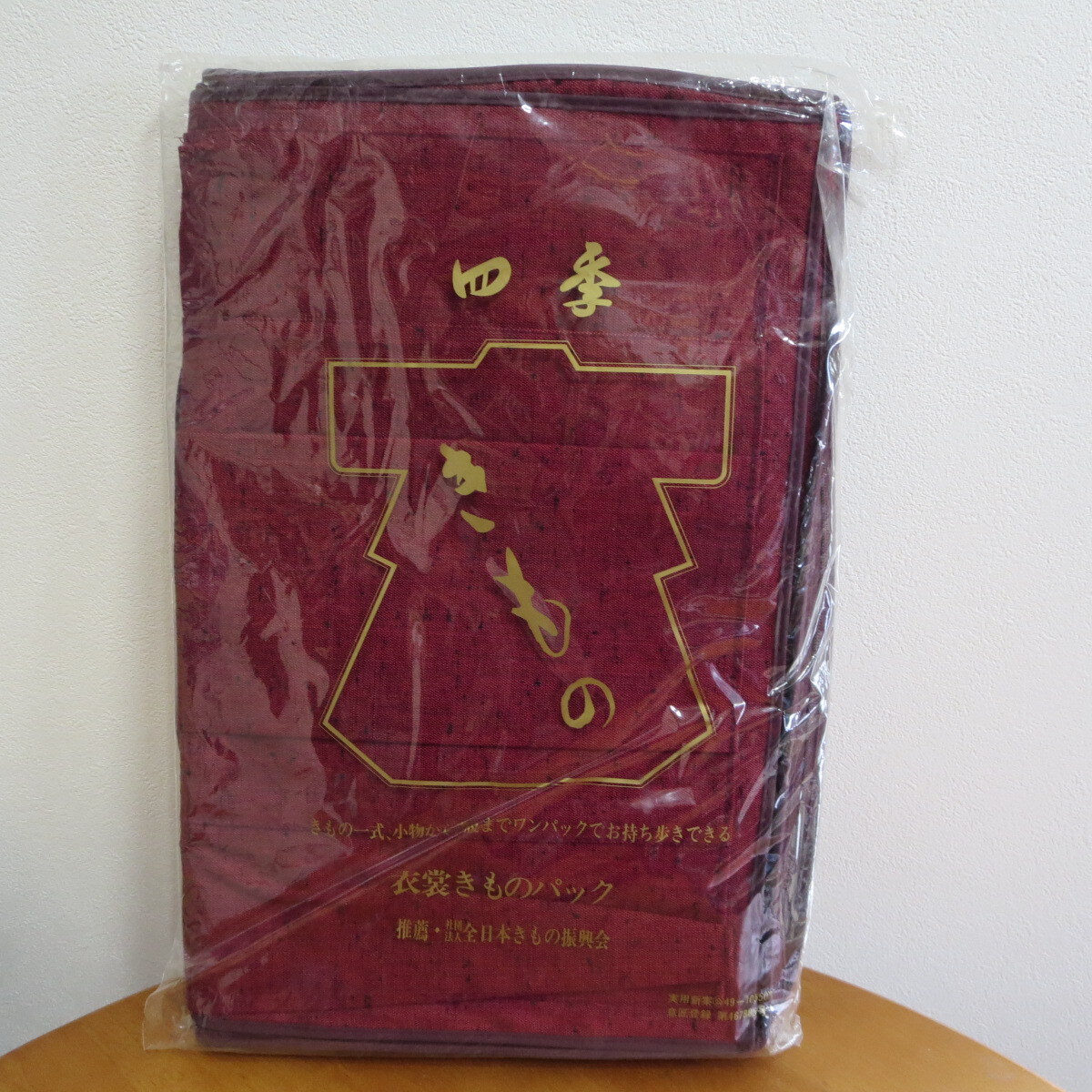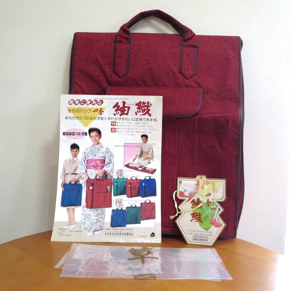 【未使用】きものパック四季 紬織 エンジ色 藤 レーヨン100% 完全防水 着物収納バッグ 和装ケース 持ち運び つむぎ織り 軽量 軽い 手提げ