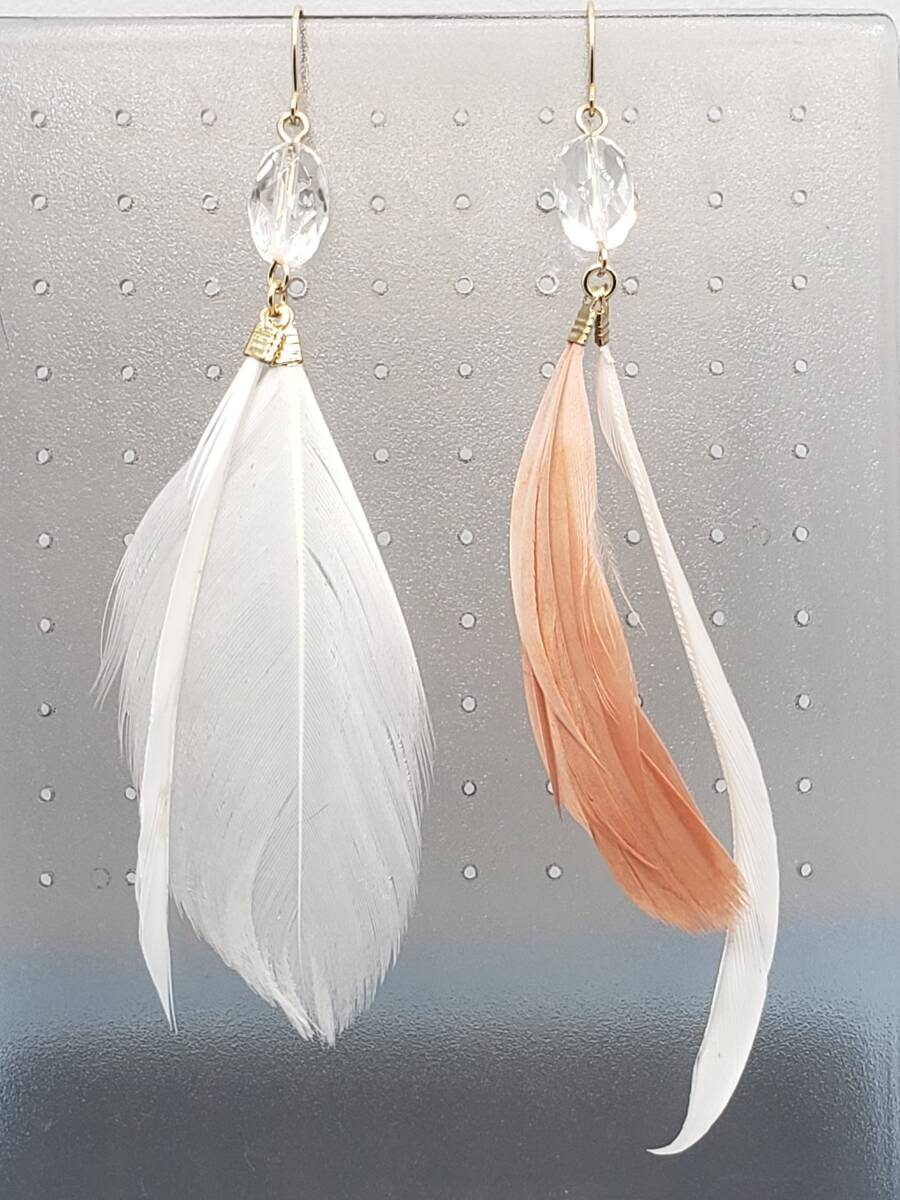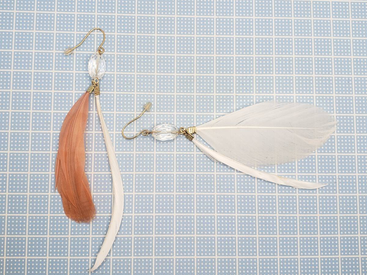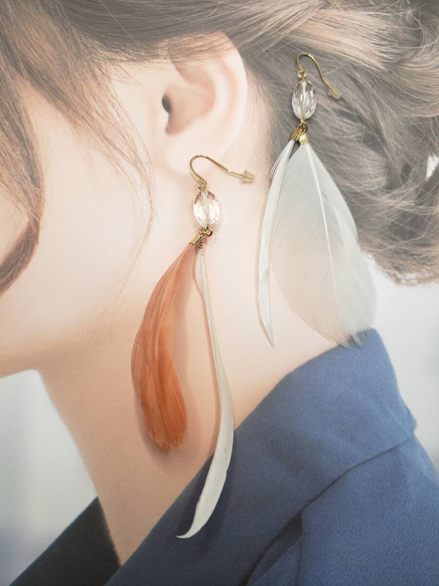 ★ハンドメイド イヤリングorピアス C926 樹脂フック・クリップ式イヤリング金具など変更無料 クリスタル フェザーチャーム★