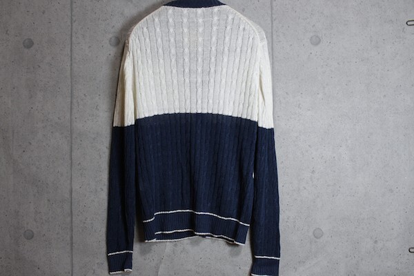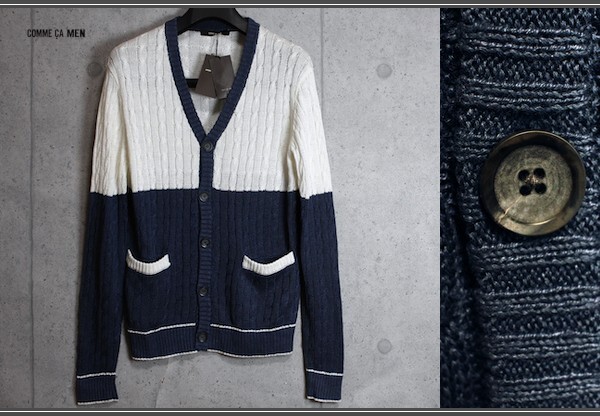 コムサ系のメインブランド、コムサメン(COMME CA MEN)の新品 コムサメン 春夏 ミドルゲージ リネン100% バイカラー ニット サマー カーディガン。