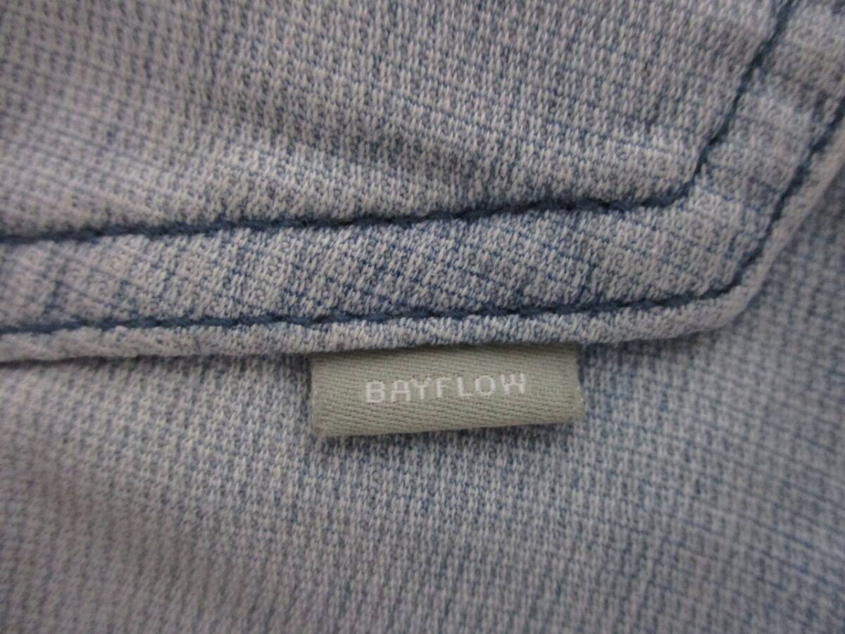 BAYFLOWのデニムパンツです。こちらの製品は独特な風合いを出す為特殊な加工をしています。全体的に繊細なヴィンテージ加工を施したデザインです。所々繊細な加工技術が施されています。腿~裾まで緩めのテーパードがかかった抜群なシルエットです。他にはない唯一無二の雰囲気で目を惹きます。シンプルTシャツ1枚でも様になります。中古品の為ご理解ある方のみお願いします。ウエストはゴム入&コード付なので長時間の着用もストレスフリーです。特殊生地なので夏でもさらりとした肌触りが抜群です。2,3回の着用ですがヴィンテージ加工が施されている為ジャンクとして出品します。ご理解ある方のみお願いします。神経質な方は入札をお控え下さい。