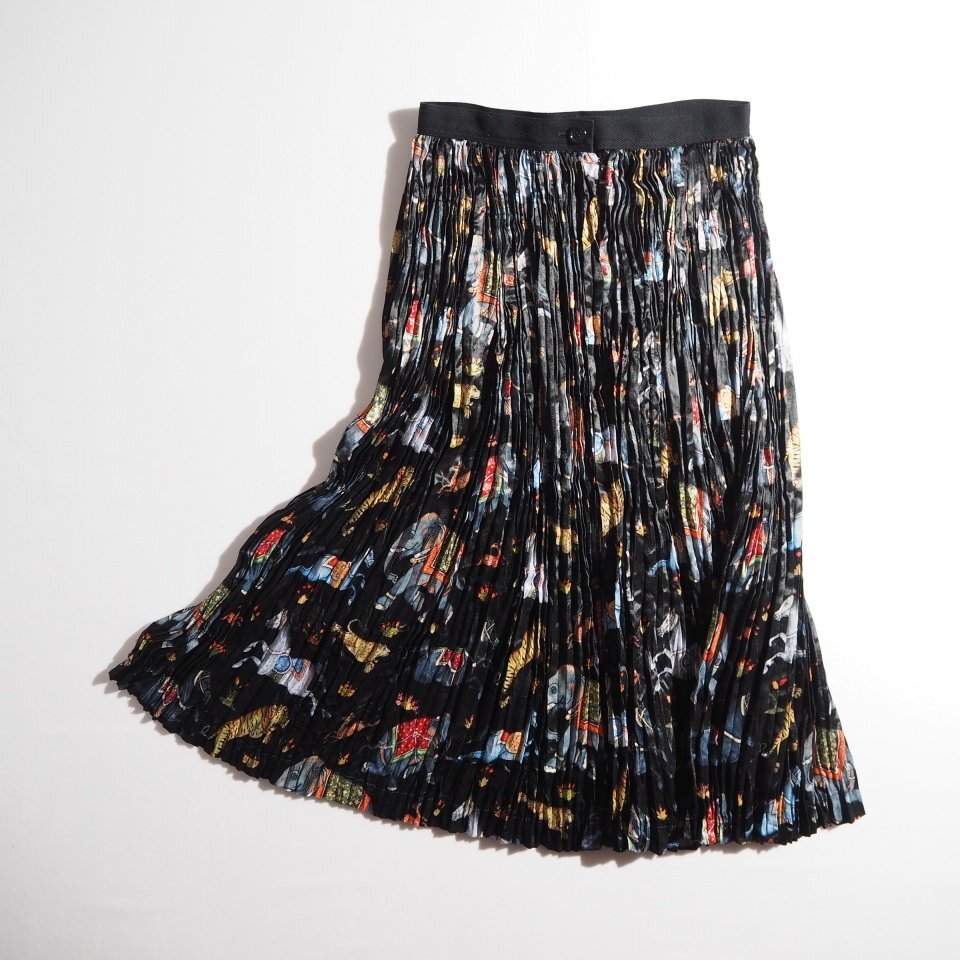 19SS アニマルプリント サテン プリーツスカート ブラック S
