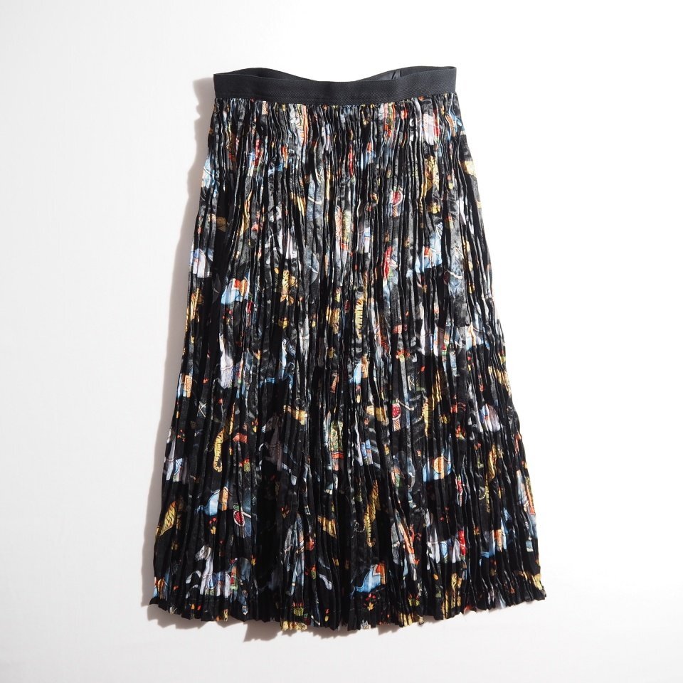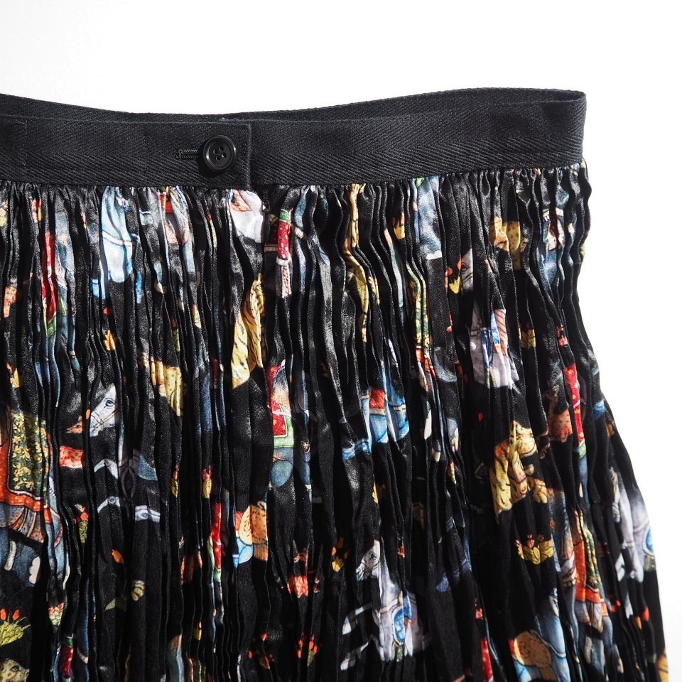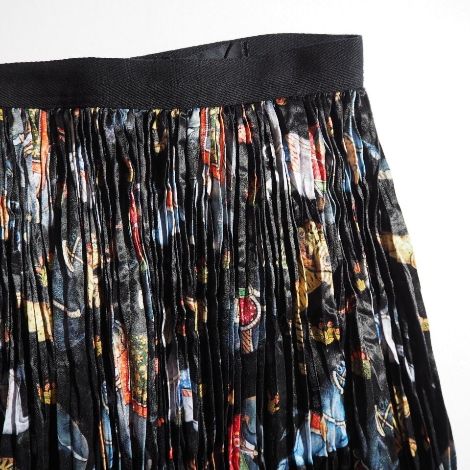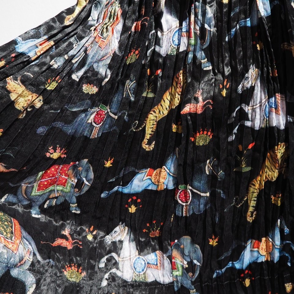 19SS アニマルプリント サテン プリーツスカート ブラック S