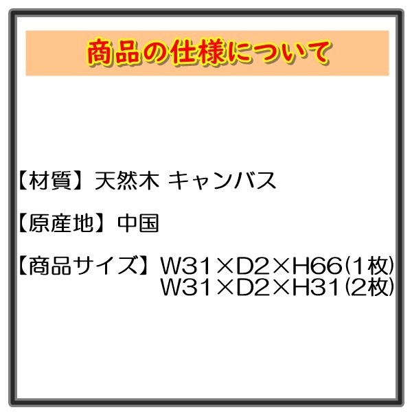![]() アートパネル ATP-126 B 商品の仕様について 【材質】天然木 キャンバス 【原産地】中国 【商品サイズ】W31×D2×H66(1枚) W31×D2×H31(2枚) ◇◆発送について◆◇
