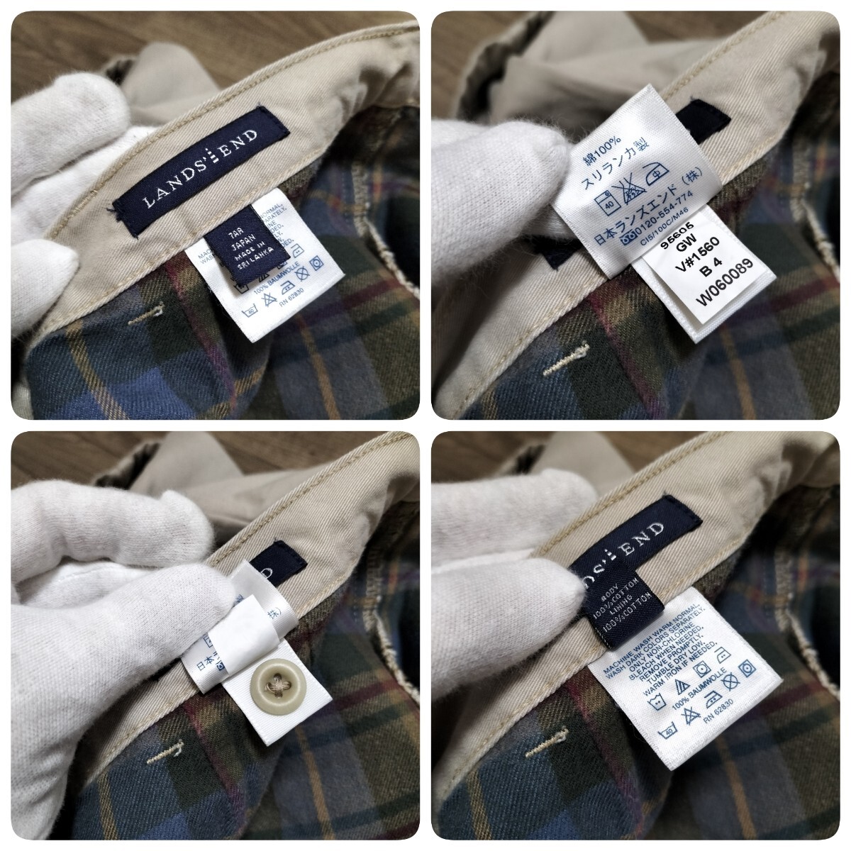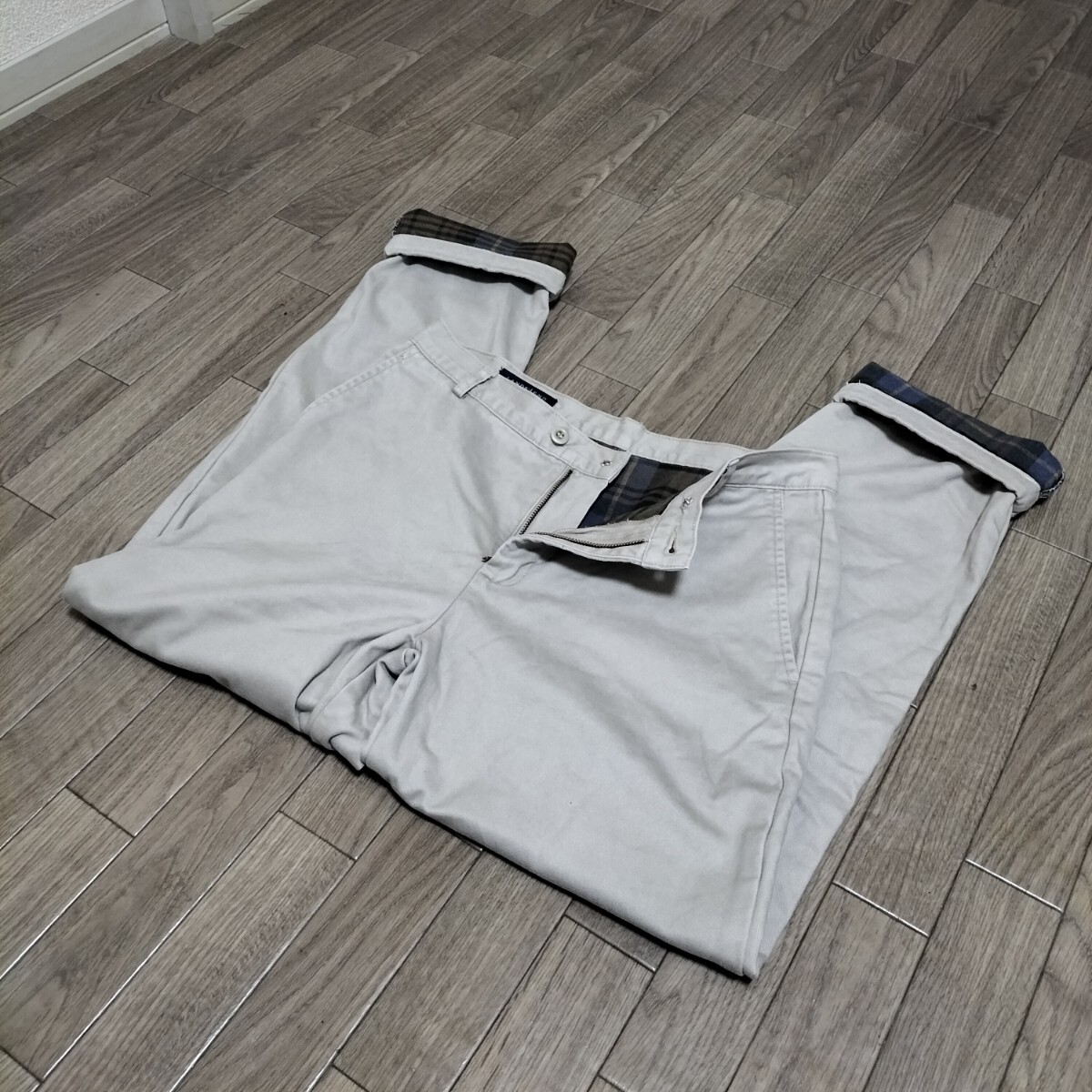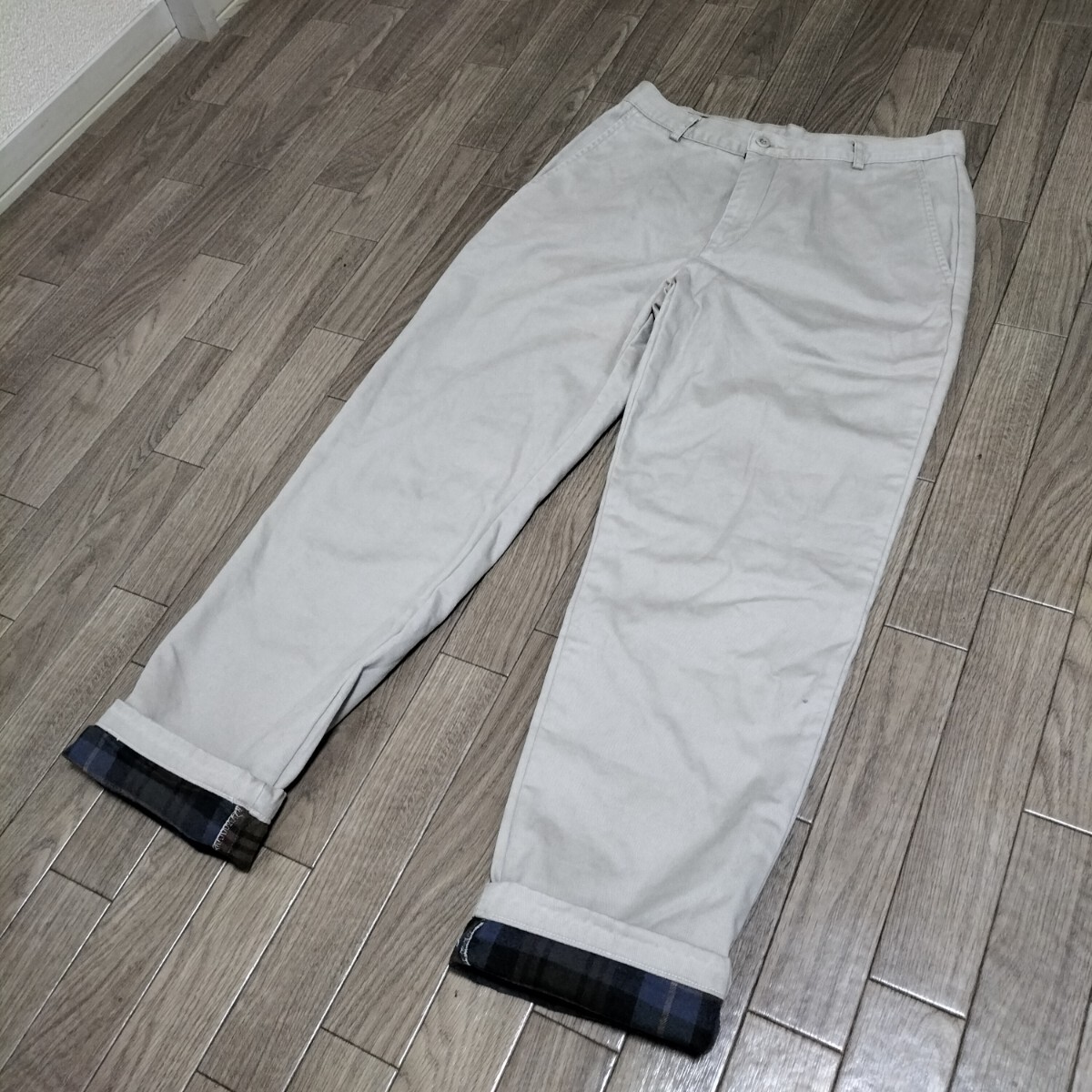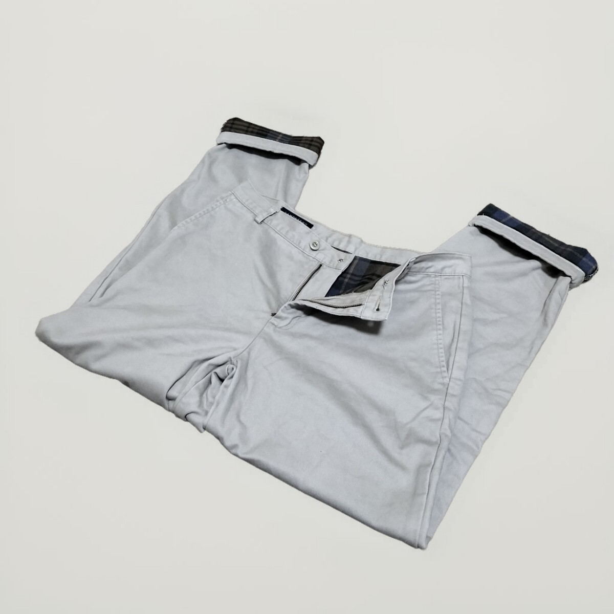 ★LANDS'END コットンパンツ チノパン スラックス ボトムス 裏地チェック柄 アイボリー 生成り 白 ランズエンド ブランド古着 USED