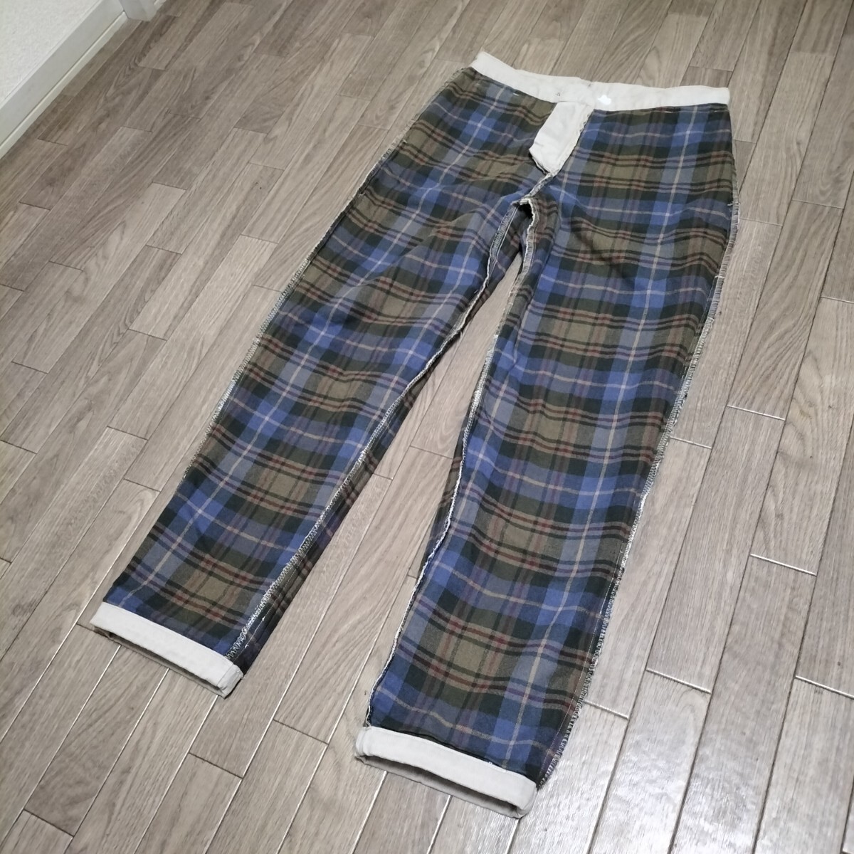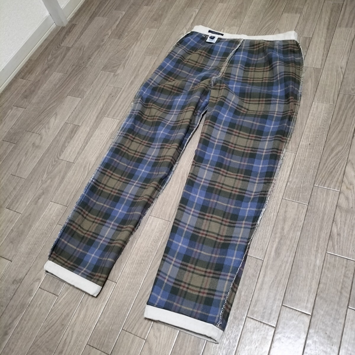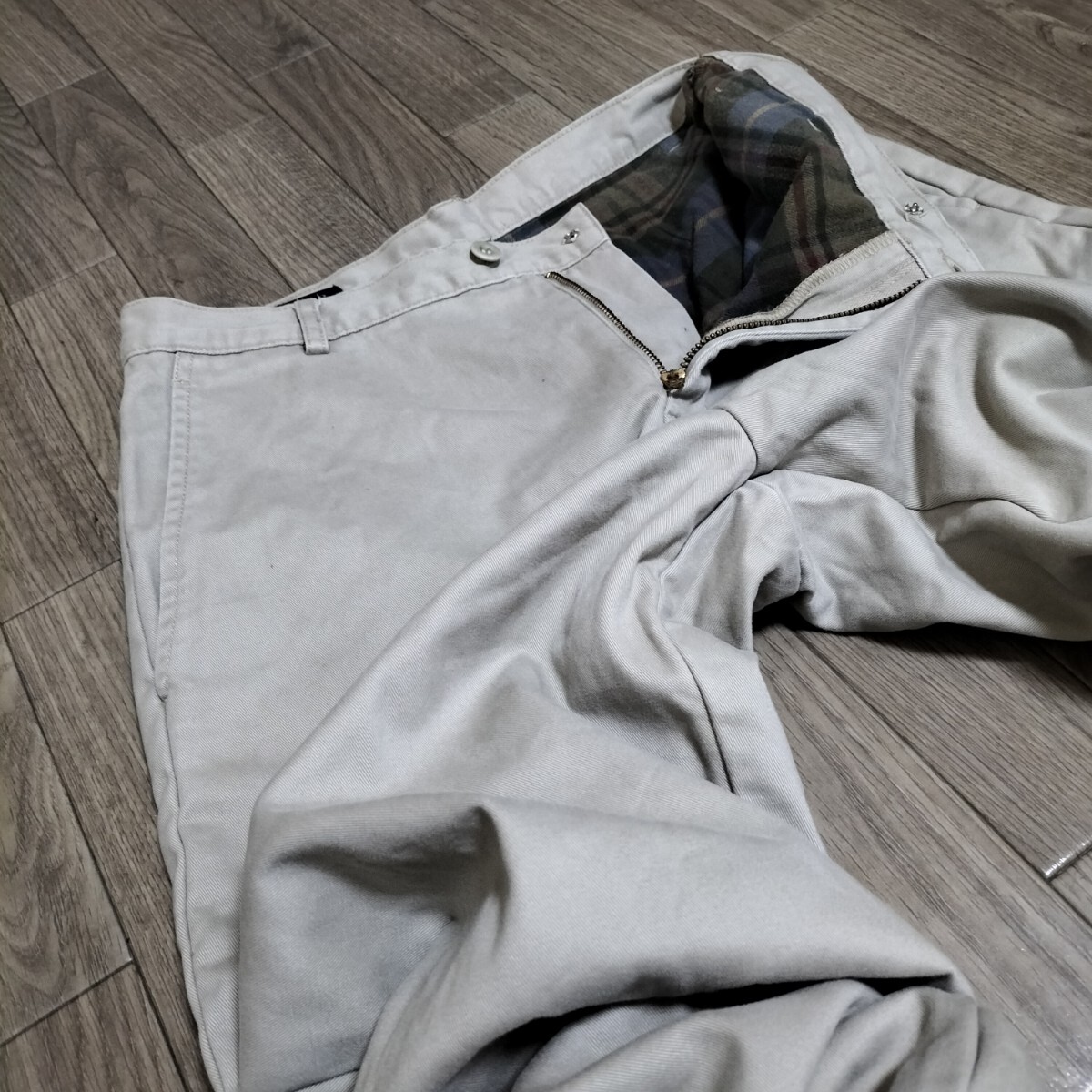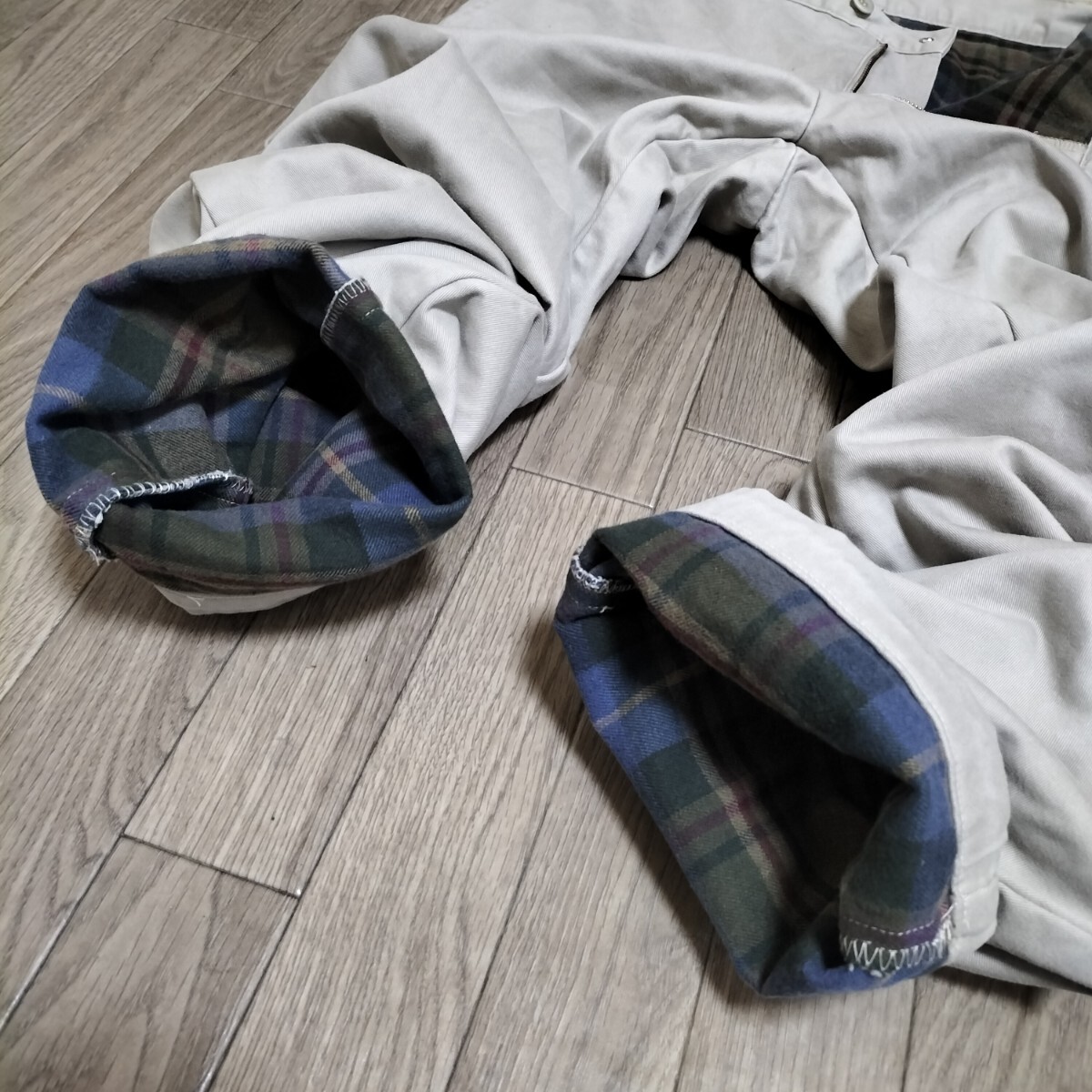 ★LANDS'END コットンパンツ チノパン スラックス ボトムス 裏地チェック柄 アイボリー 生成り 白 ランズエンド ブランド古着 USED
