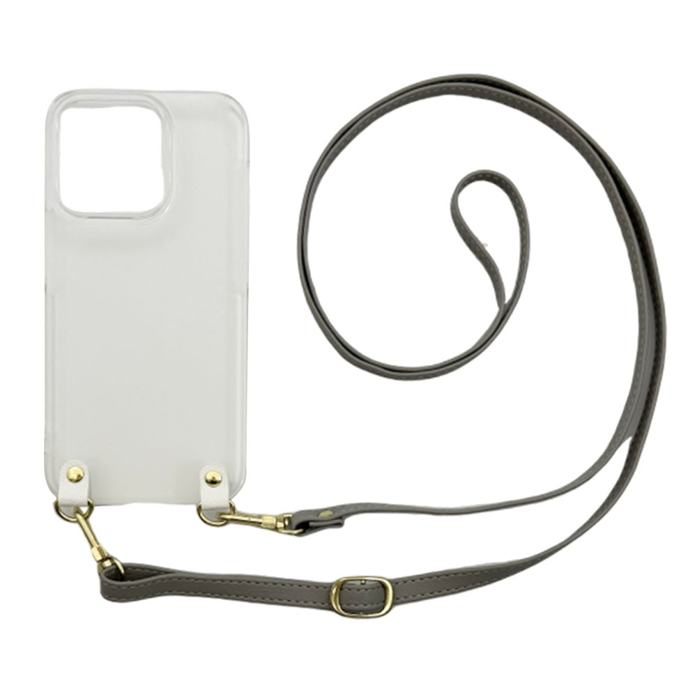 Galaxy S23 SC-51D SCG19(ライトグレー)ストラップホルダー クリアケース ショルダー 肩掛け 首かけ 斜めがけ