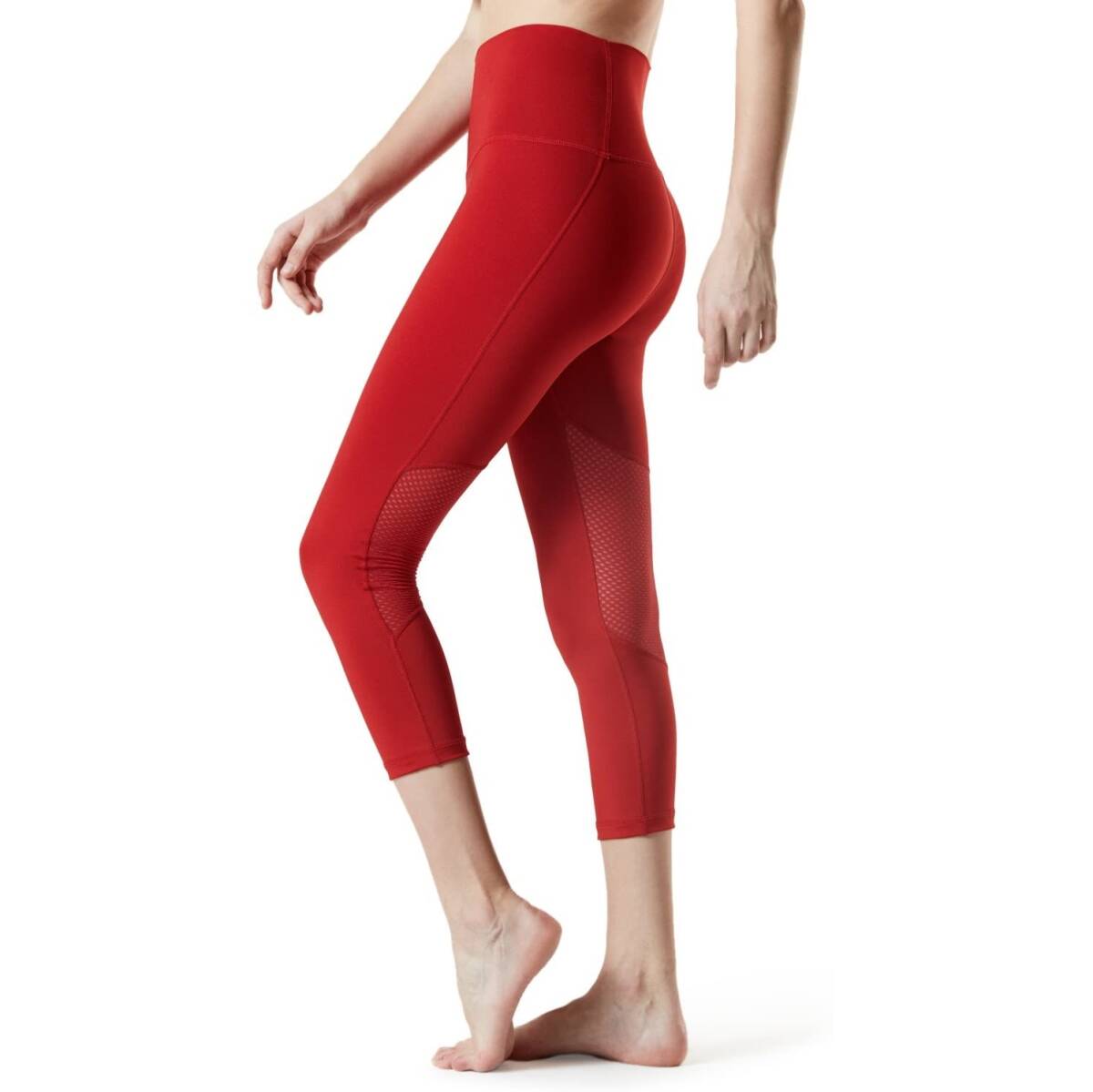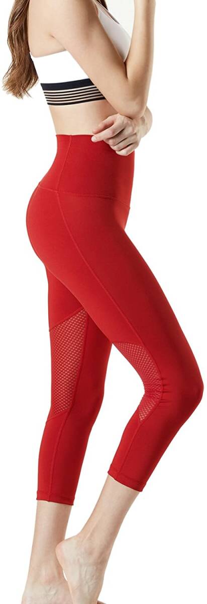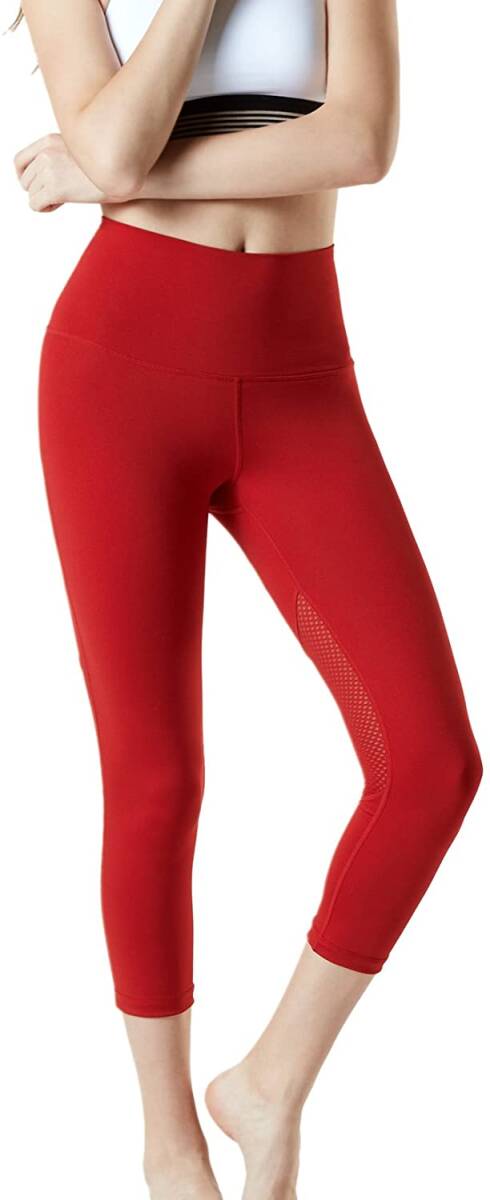 TESLA|レディース ヨガパンツ 7分丈 ハイウエスト レッド XL 即日発送