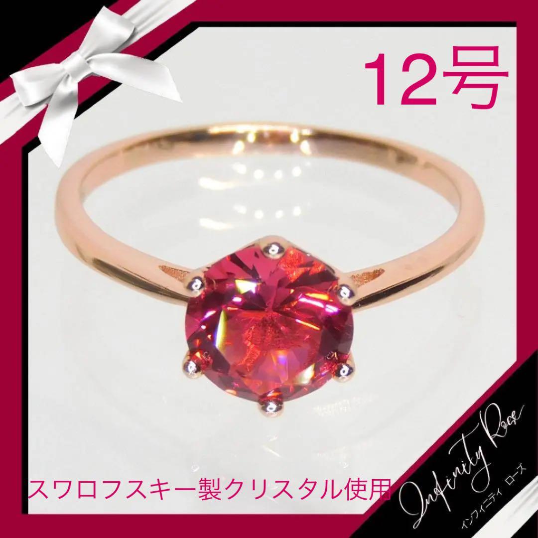 (1134)12号 ピンクゴールド ローズクリスタル エンゲージリング 指輪 スワロフスキー製クリスタル使用