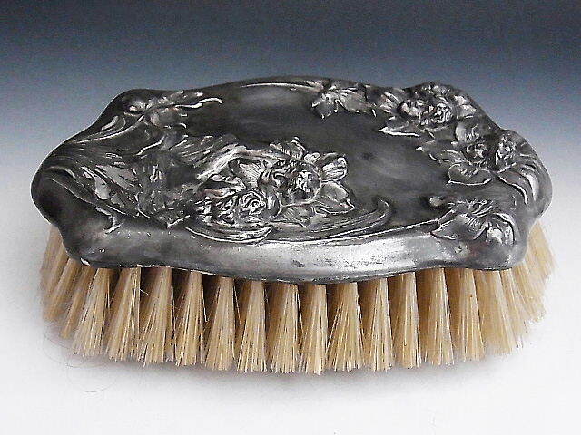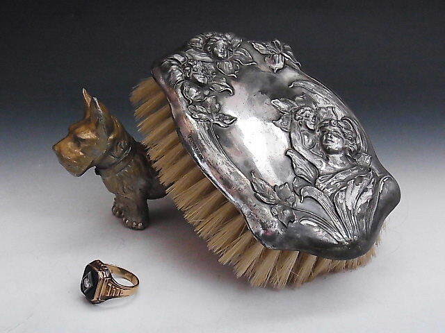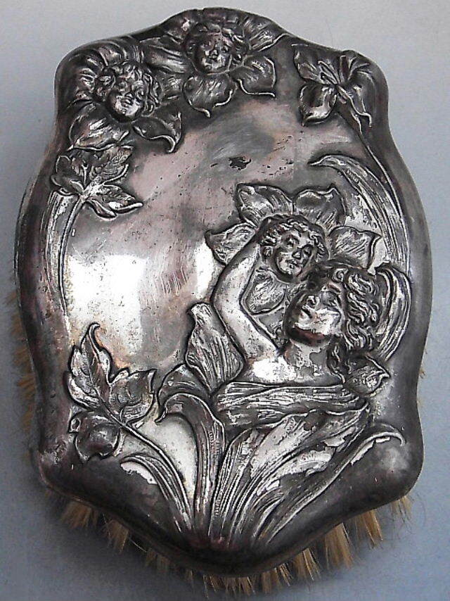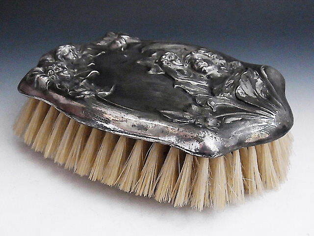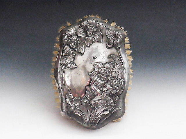 四重シルバーメッキ 花の妖精文様 洋服ブラシ ◆ 米国アンティーク