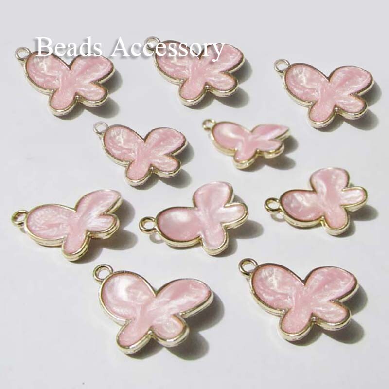 BA-0577 蝶々 18×15mm ゴールドにピンクカラー 9個