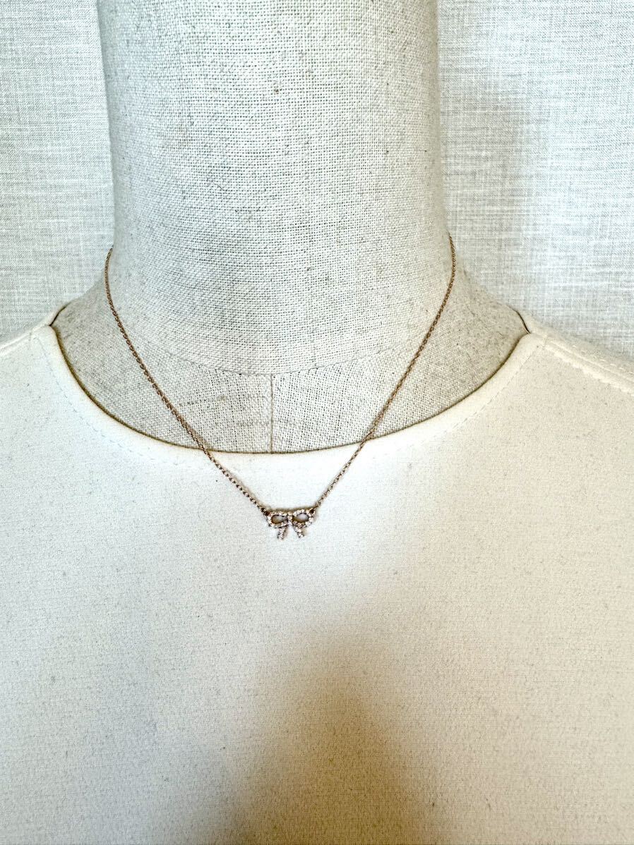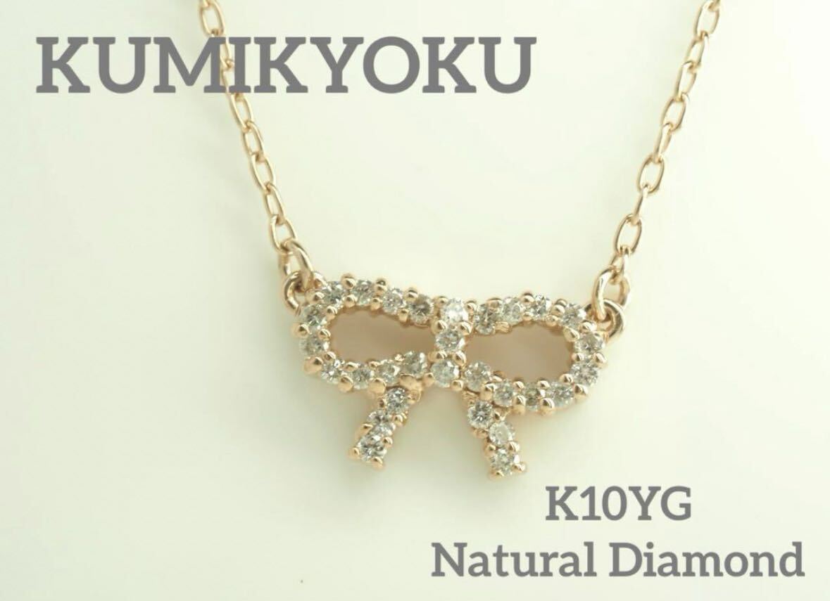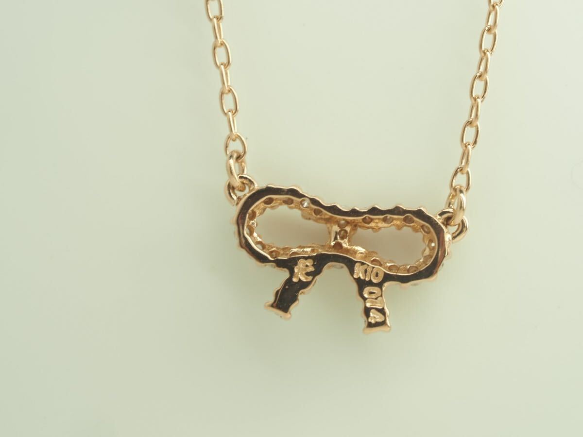 組曲☆可愛いリボンモチーフK10PG天然ダイヤモンドネックレス zr