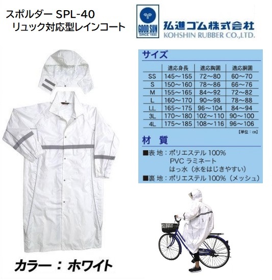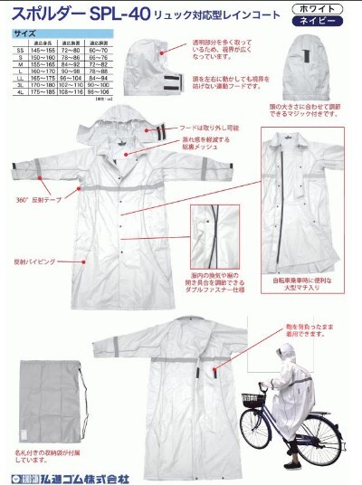 弘進ゴム リュック対応型レインコート ≪SPL-40≫を特別価格にて提供します。