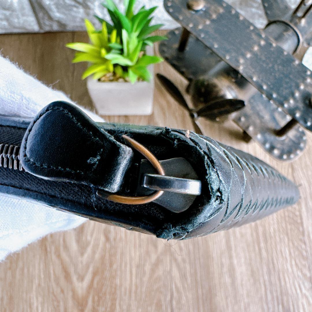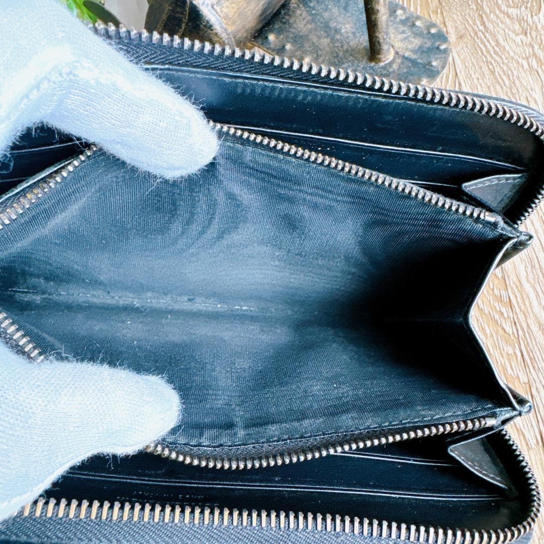 コバに割れと破れ、小銭入れ箇所に汚れがございますが、まだまだご使用いただけます。