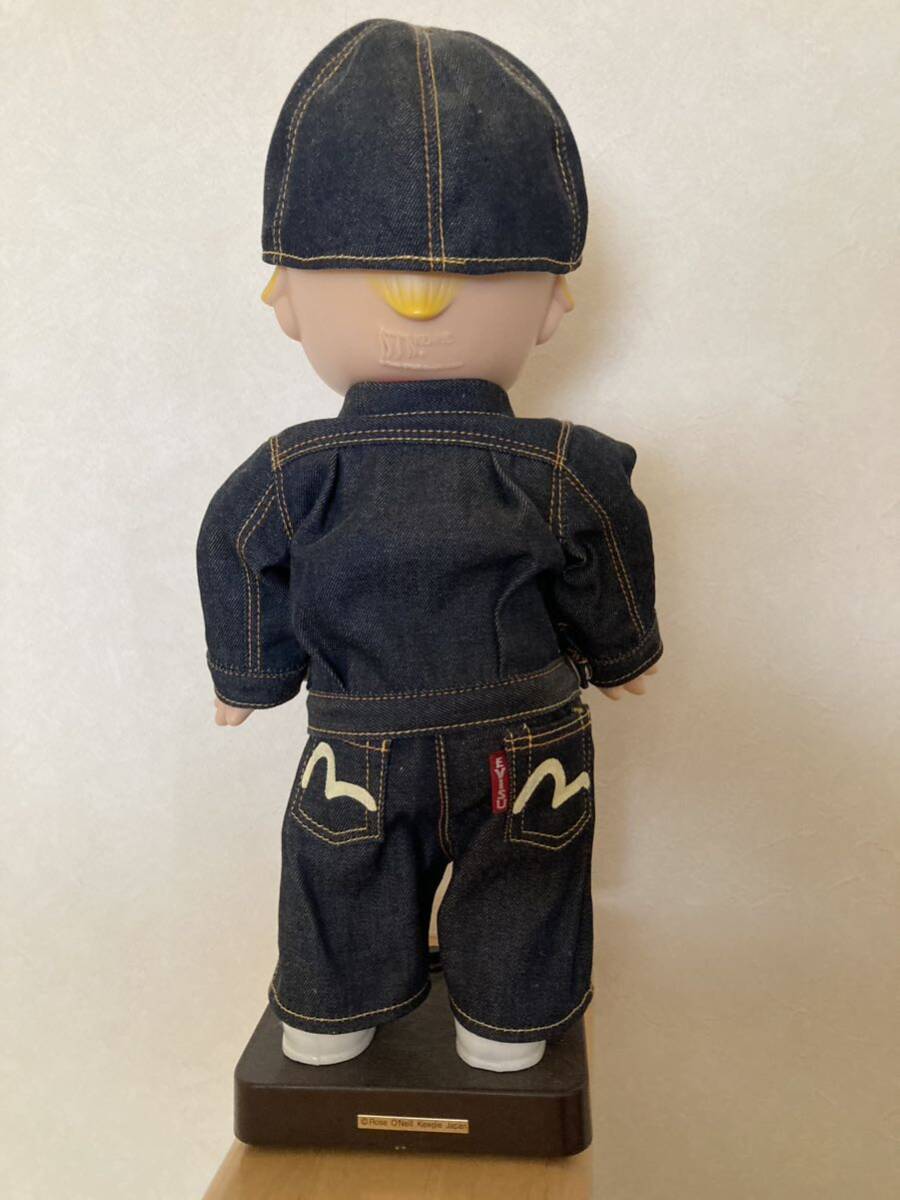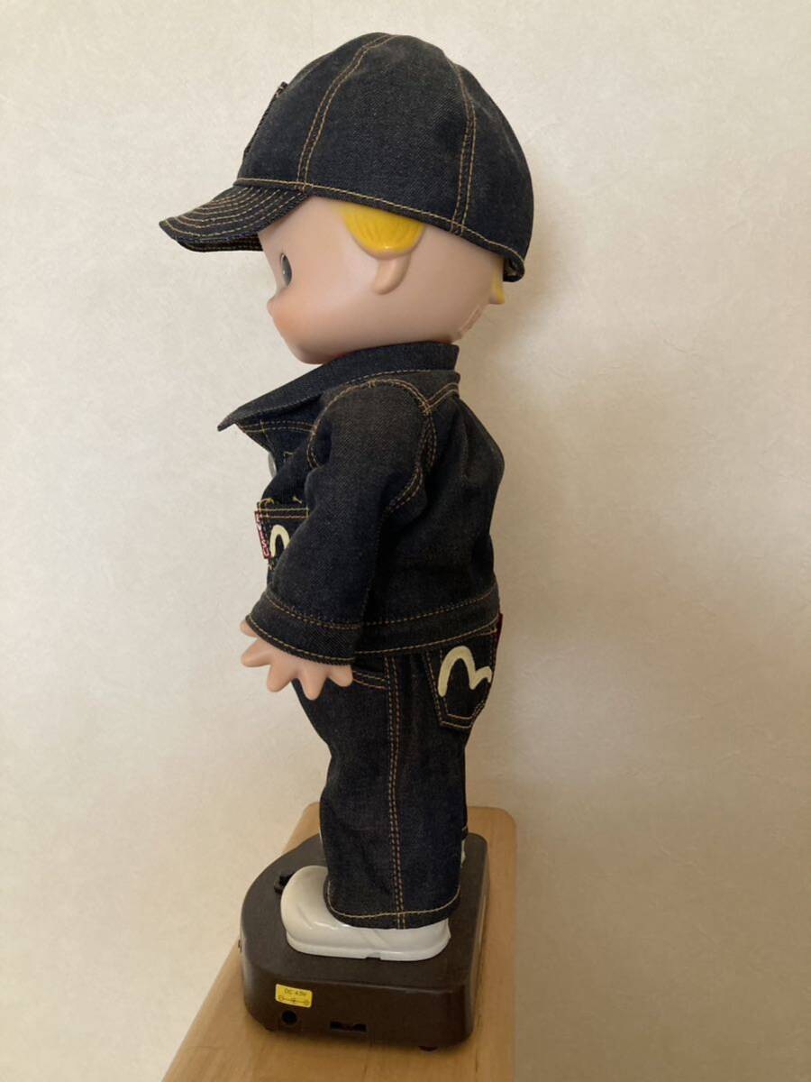 数年前に大阪の梅田店で購入した『evisu《エヴィス》Kewpie人形』です。バディエビスのような本格的な人形ではありませんが、とてもかわいい愛嬌のあるKewpie人形ベースのエヴィス人形です。飾っていたので、若干のホコリ等はありますが、美品だと思います。ベースのKewpie人形は、電池を入れると音楽が流れます。ノークレーム、ノーリターンでお願いします。