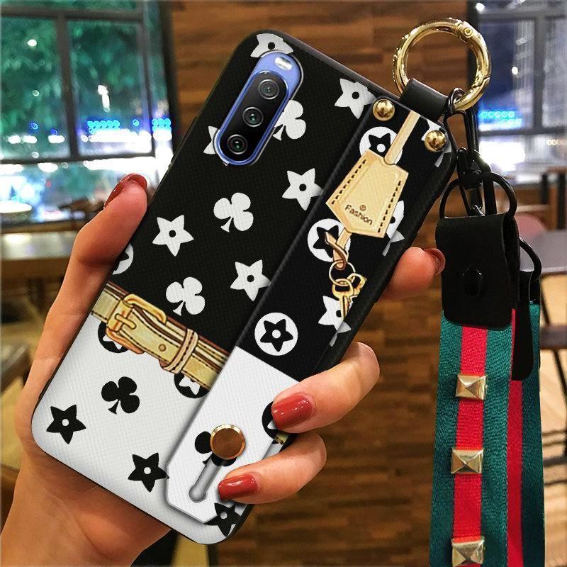 Xperia 10 IV スマホケース 薄型 バンド ストラップ付 黒と白