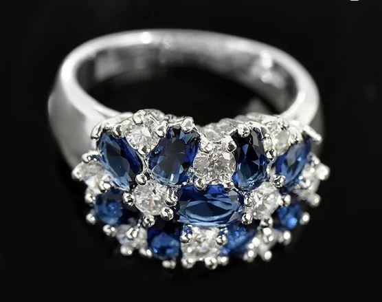 土台がシルバーの存在感のある大振りなサファイヤの指輪になります。