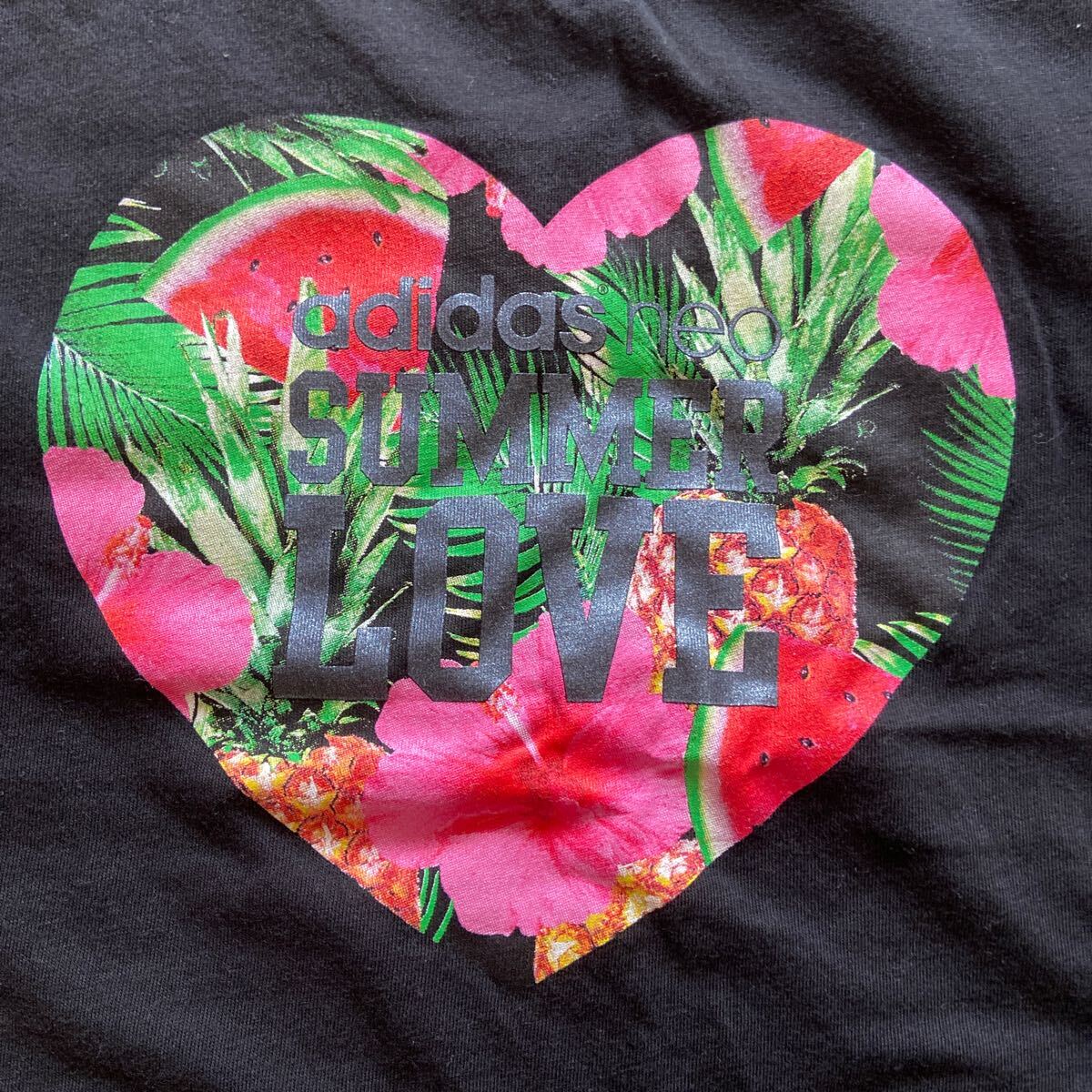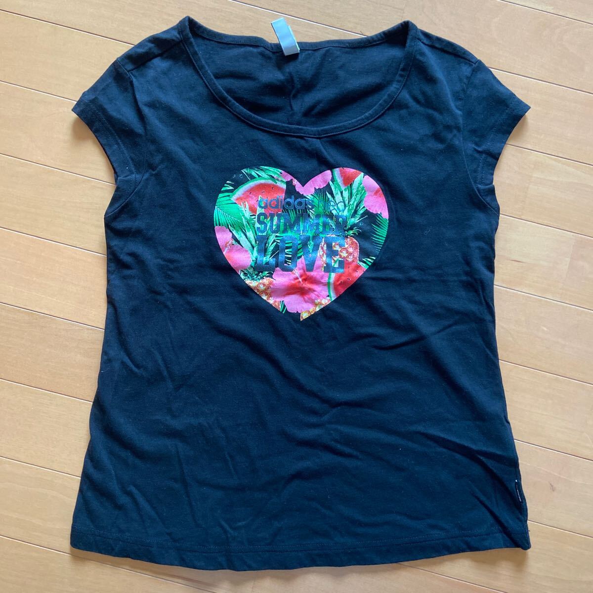 アディダスの夏っぽい転写プリントがかわいい半袖カットソーです。