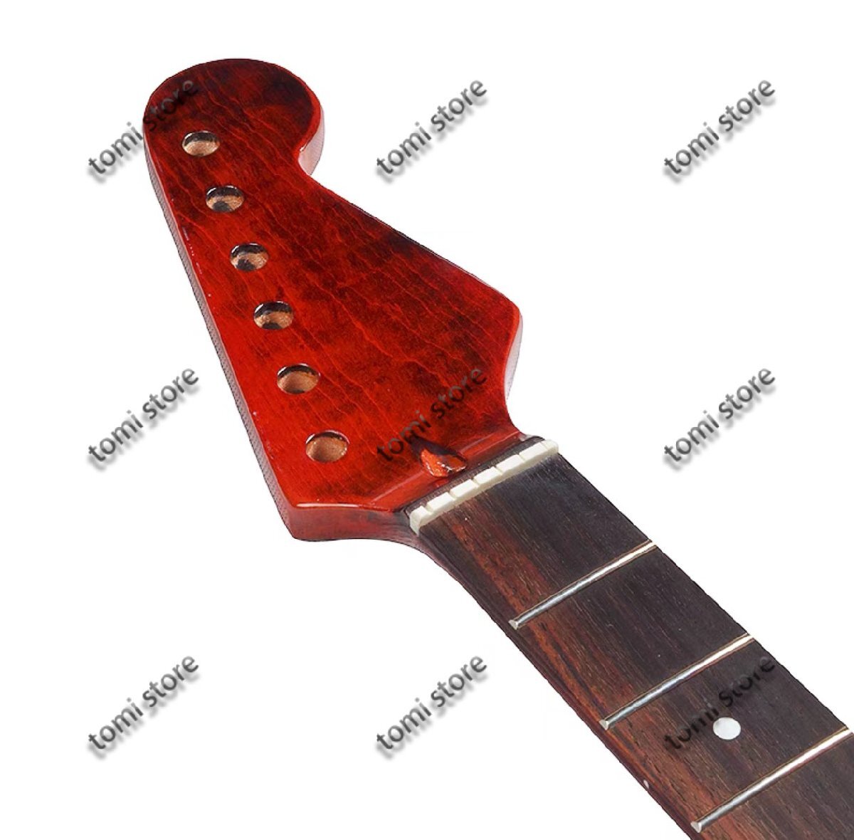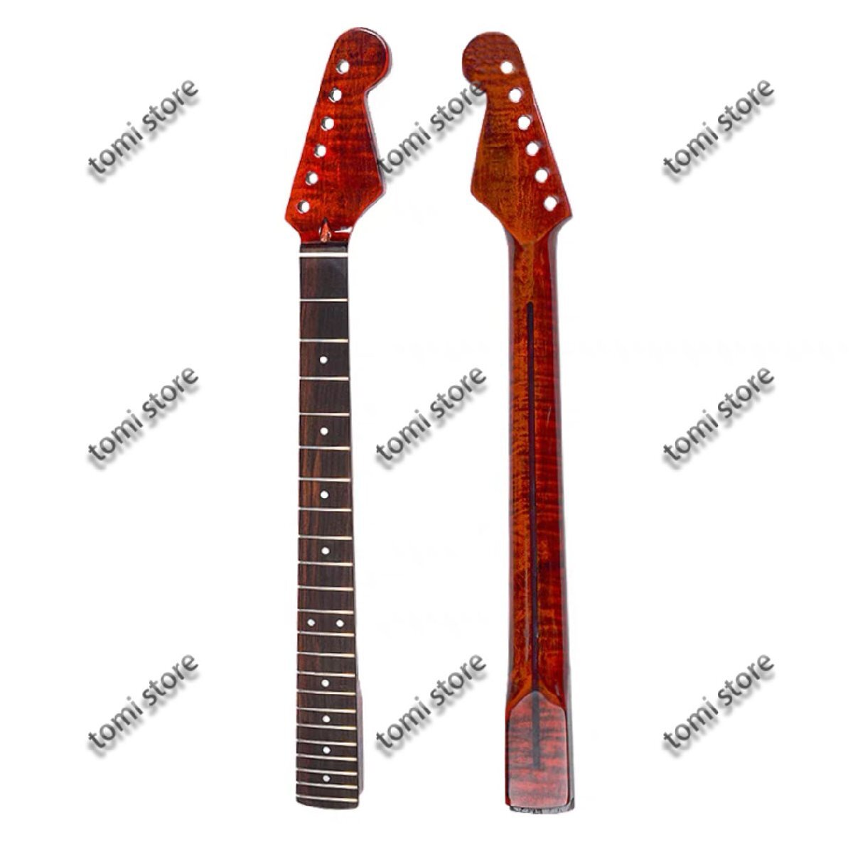 エレキギターネック STストラトタイプ交換用ネック ギターパーツ トラ杢メイプル 艶有り トラ杢ネック ローズウッド指板