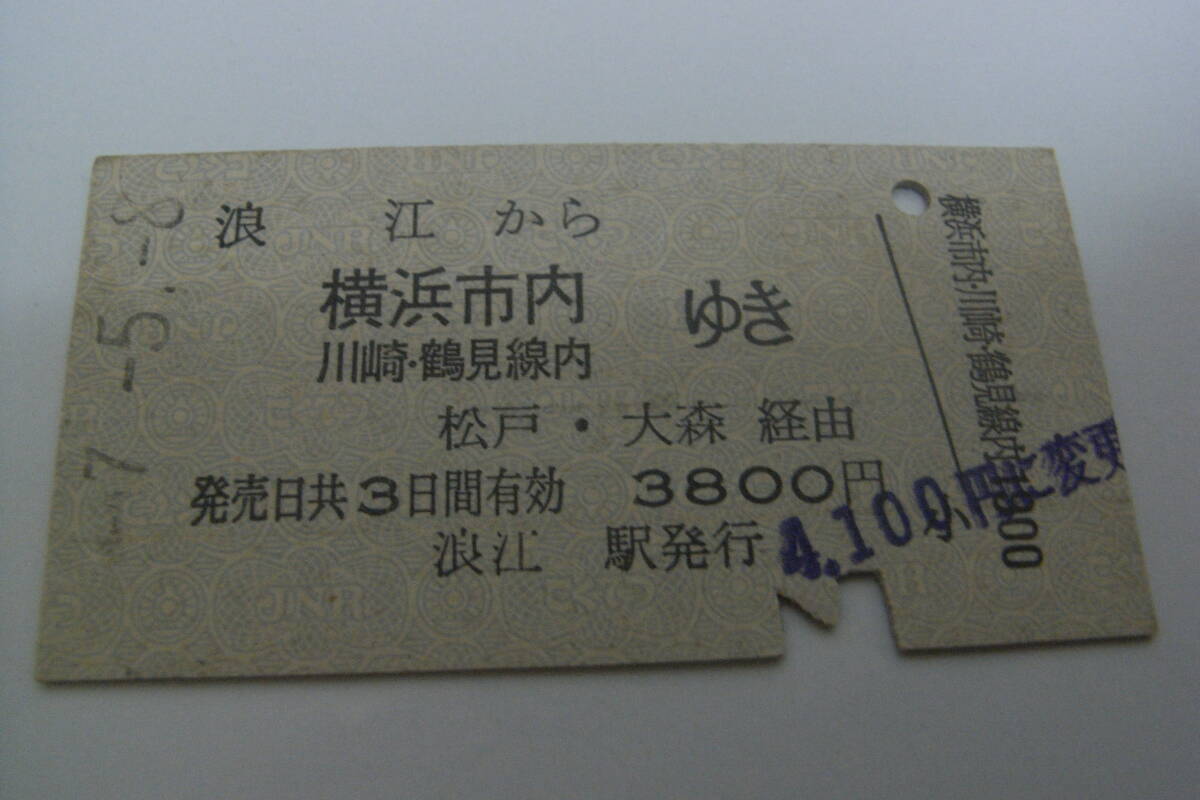 常磐線 浪江から横浜市内 川崎・鶴見線内 ゆき 松戸・大森経由 浪江駅発行 国鉄