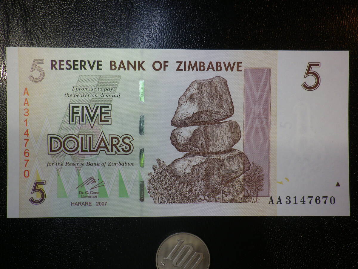 ジンバブエ 2007年 5Dollars 未使用 p-66