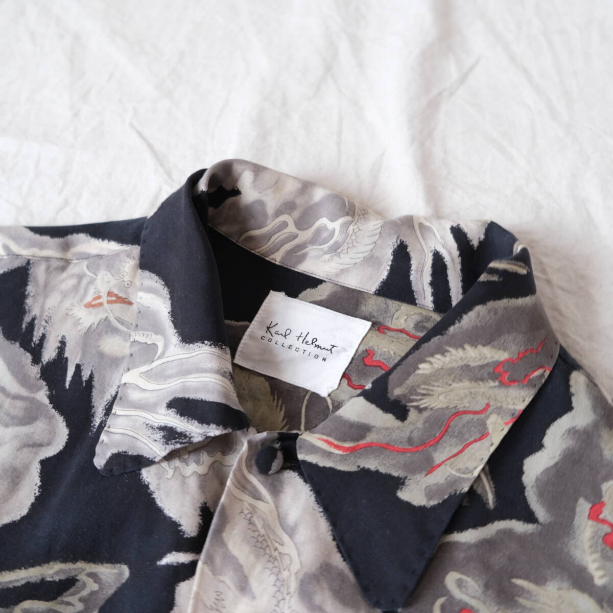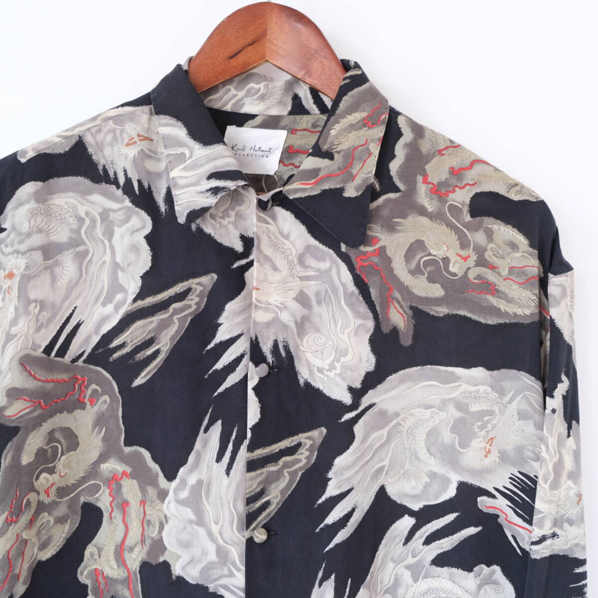 【 Karl Helmut COLLECTION 】カールヘルム コレクション 龍 ドラゴン柄 レーヨン 長袖シャツです。