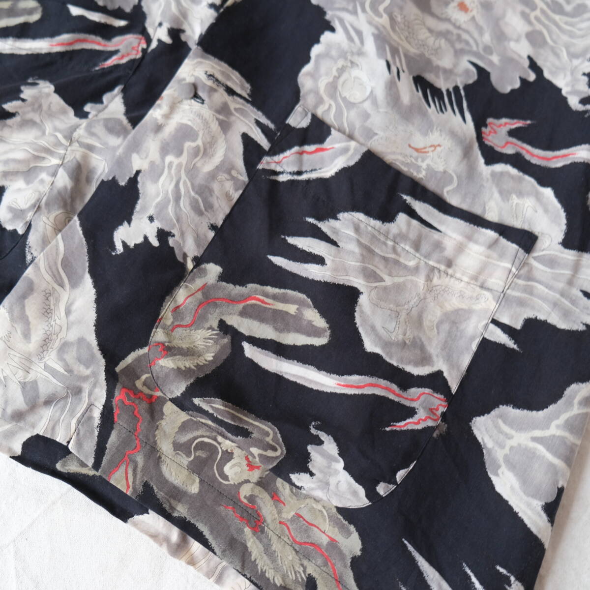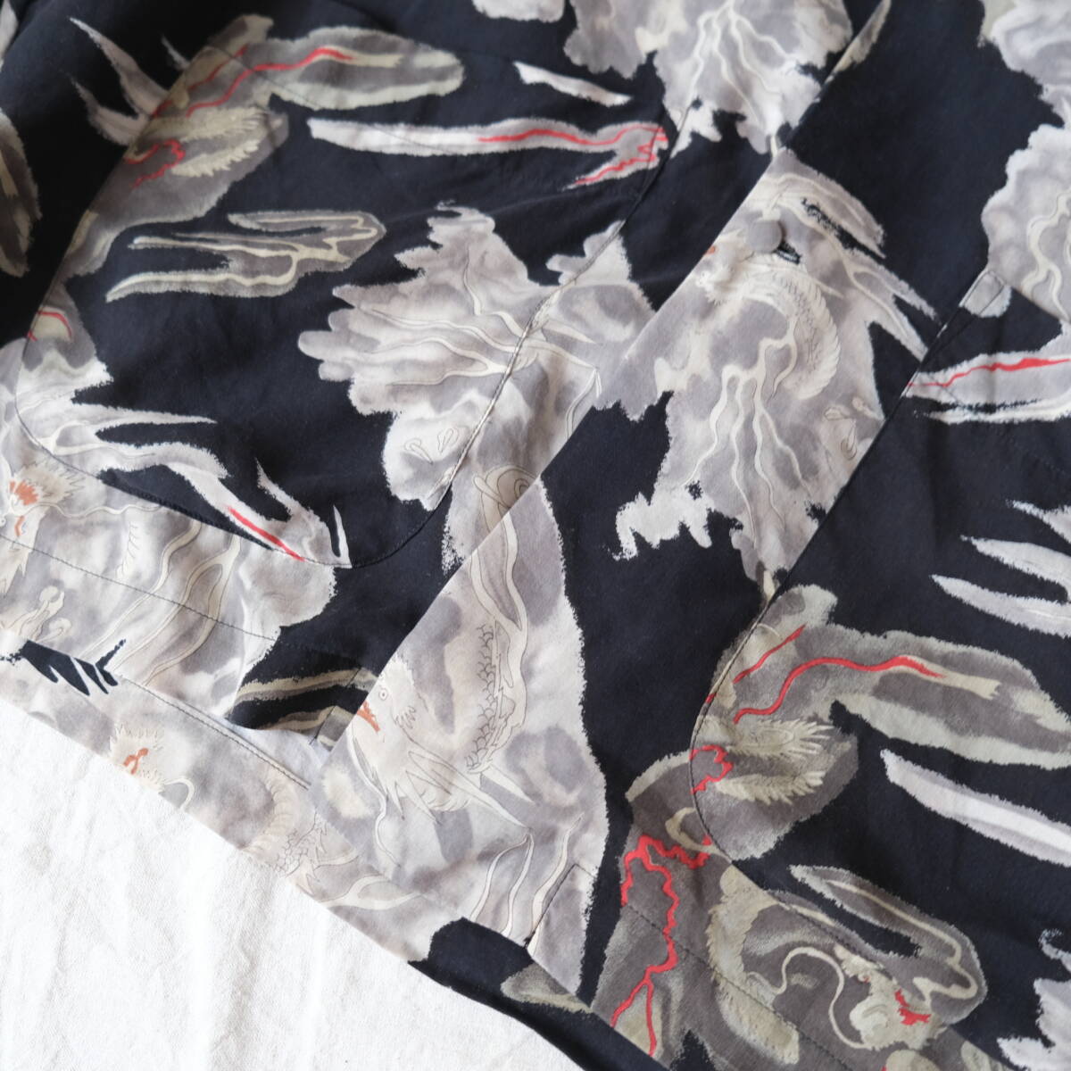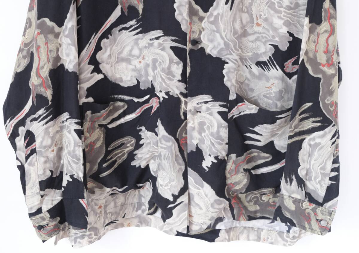 【 Karl Helmut COLLECTION 】カールヘルム コレクション 龍 ドラゴン柄 レーヨン 長袖シャツ / ブラック 黒系 / L / 総柄 日本製 アロハ