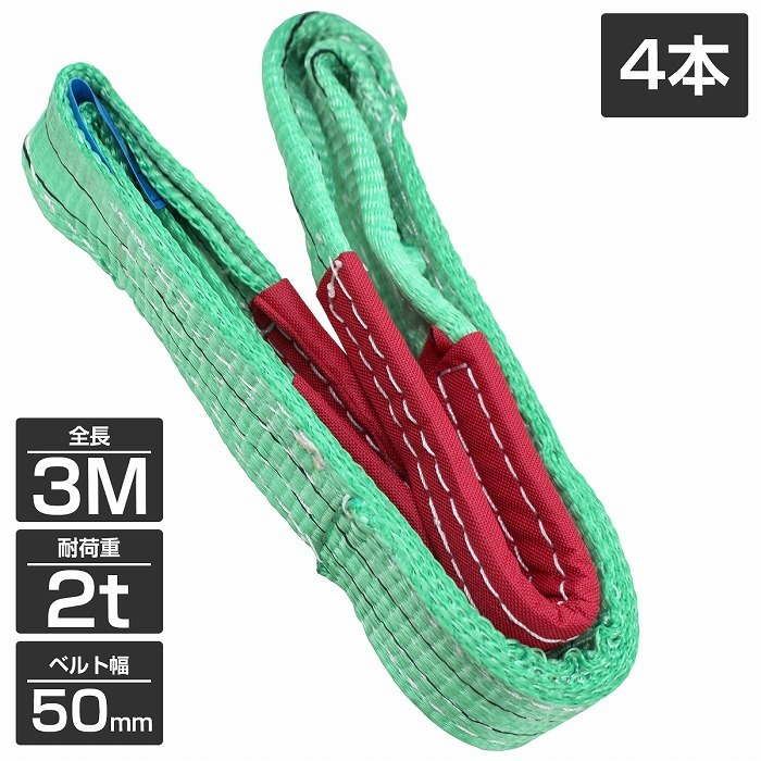 【4本 セット/耐荷2t/長さ3m】スリング ベルト 吊上げ ナイロン クレーン ロープ 荷吊り 玉掛け 牽引 運搬 2000kg 2トン 3m 幅50mm