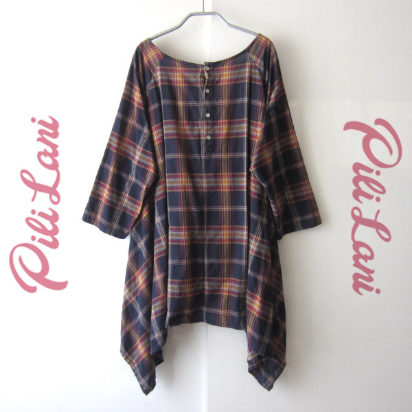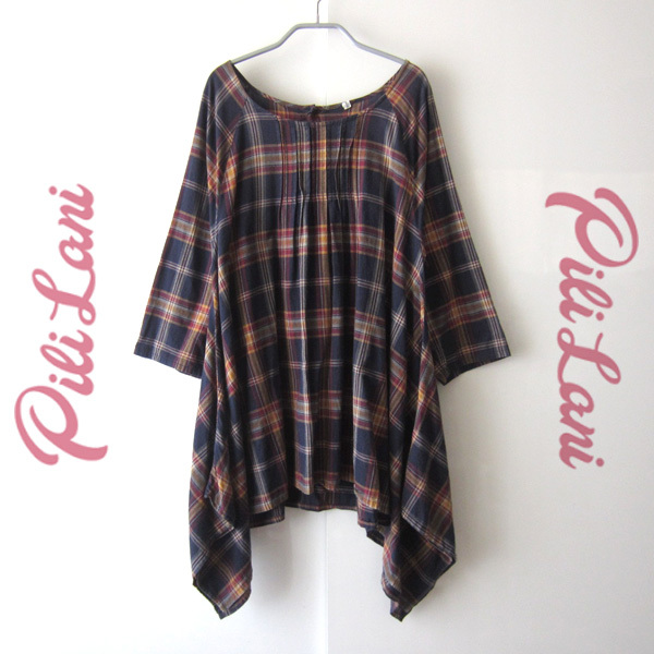 Pili Lani/ピリラニ★ ゆったりサイズ チェック柄 変形裾チュニックです。