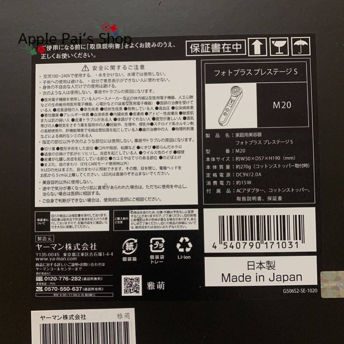 ・付属品:コットンストッパー、ACアダプター、取扱説明書、保証書