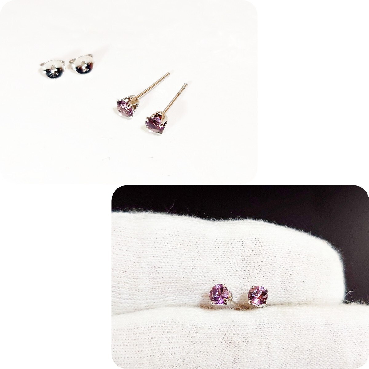 小粒なアメジスト石にはローズカットが施されていてストーンの色味は透明感のあるクリアな薄紫色です。