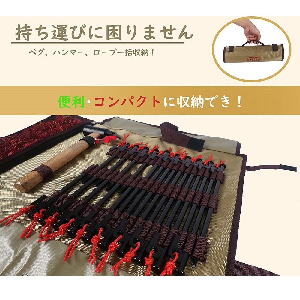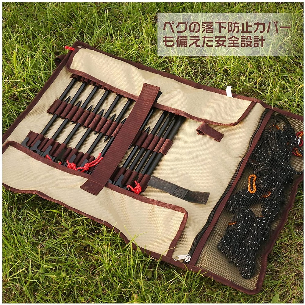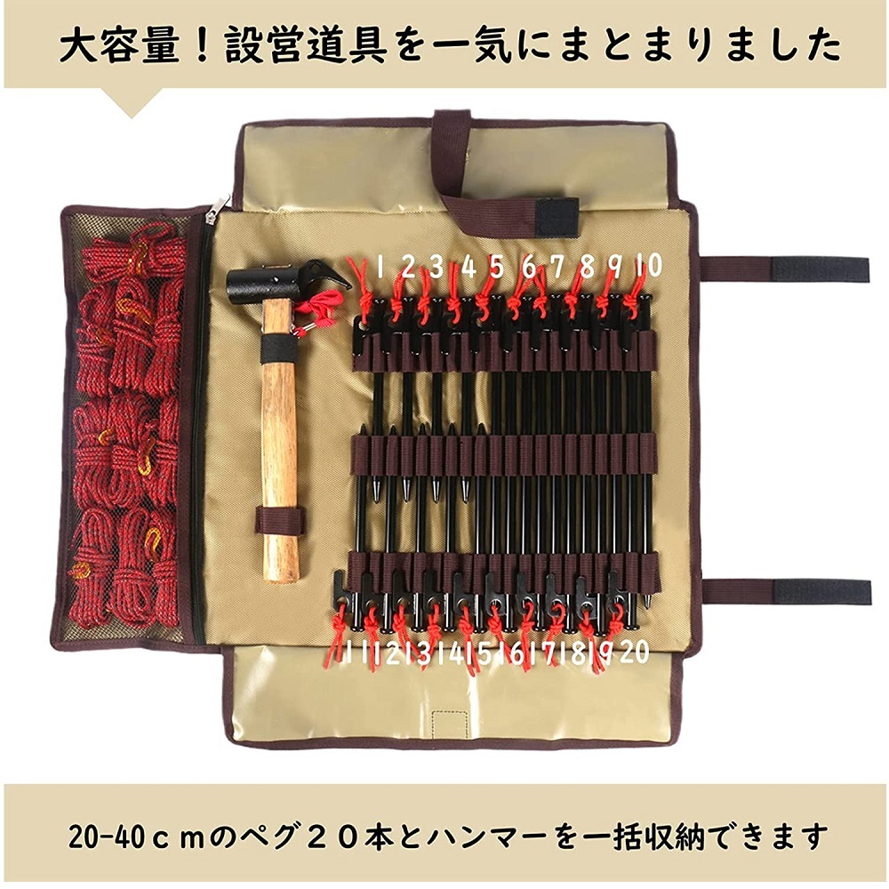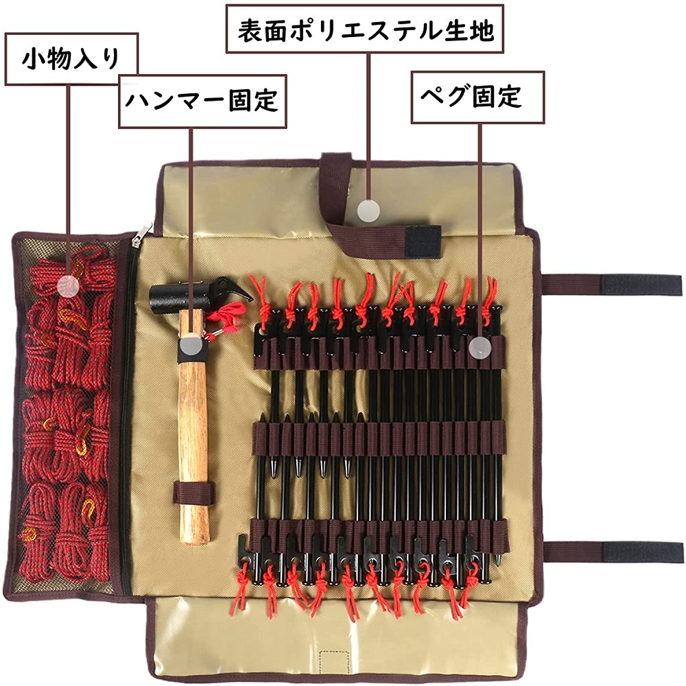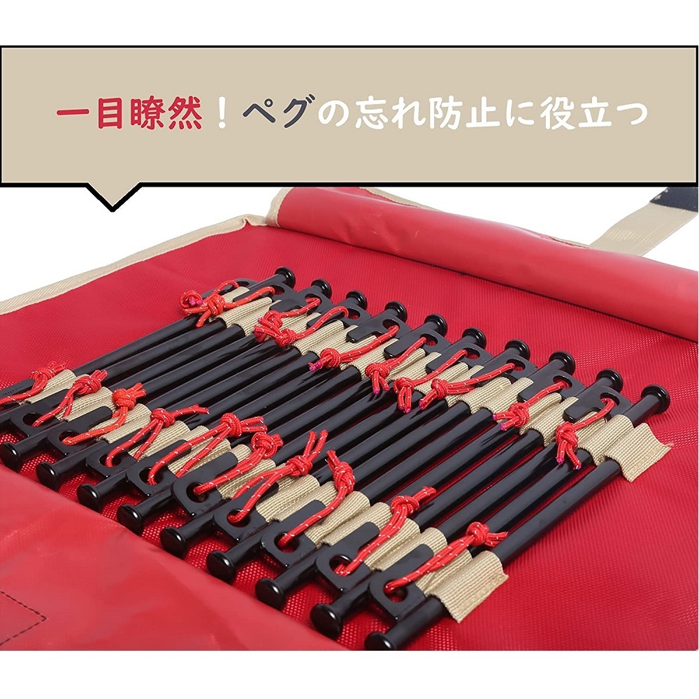 ■新品未使用品■ 商品説明 素材構成: 100% ポリエステル サイズ 展開時:(L)62×43.5cm 収納時:(L)3.5×12.5×2cm 重さ:(L)400g 表面生地はポリエステルとなっており、耐久性に優れる為、ほつれ難い仕様となっております。 又、芝生の上に置いても付着しにくく、片付けが楽な素材です。 ペグは置き忘れが多く、普通のバッグやコンテナだど紛れてしまう為、ペグケースに差し込んで収納すれば一目瞭然 20-40cmのペグ20本収納出来、大の方ではハンマー固定と、小物ポケットがあるので、Y型ペグやロープ等も収納できます。 落下防止ガバーも備えているので安心です。 空間を取らない折りたたみ式で、ペグやハンマーを固定収納でき、コンパクトにまとまります。 カラー:レッド・ベージュ・グリーン ※落札後にご希望のカラーを1点お選び下さい。 |