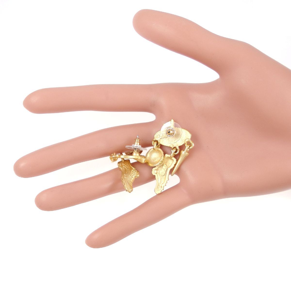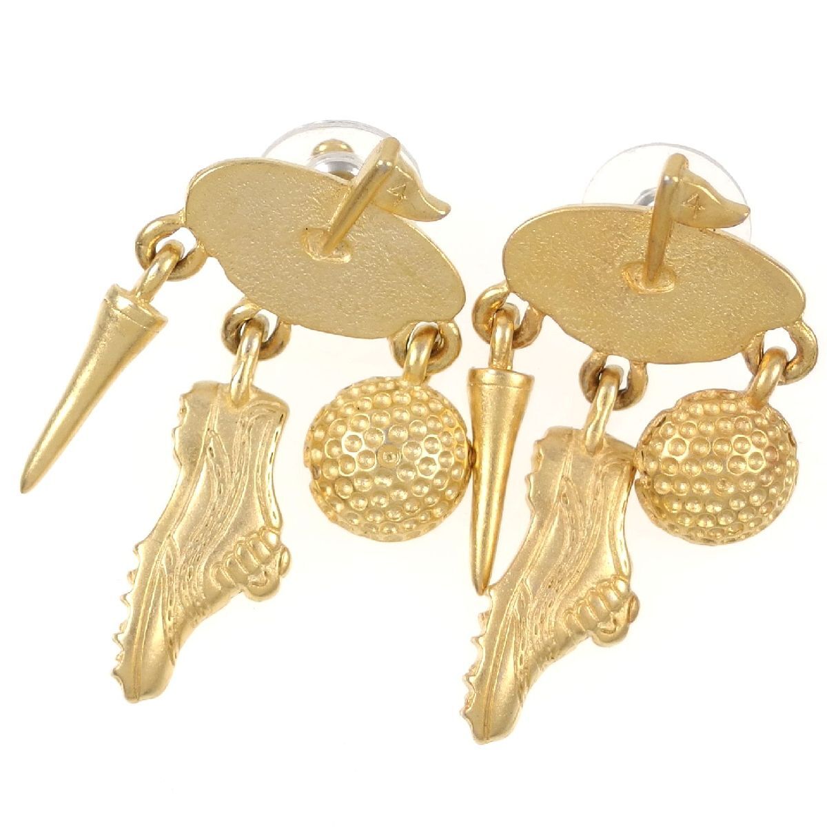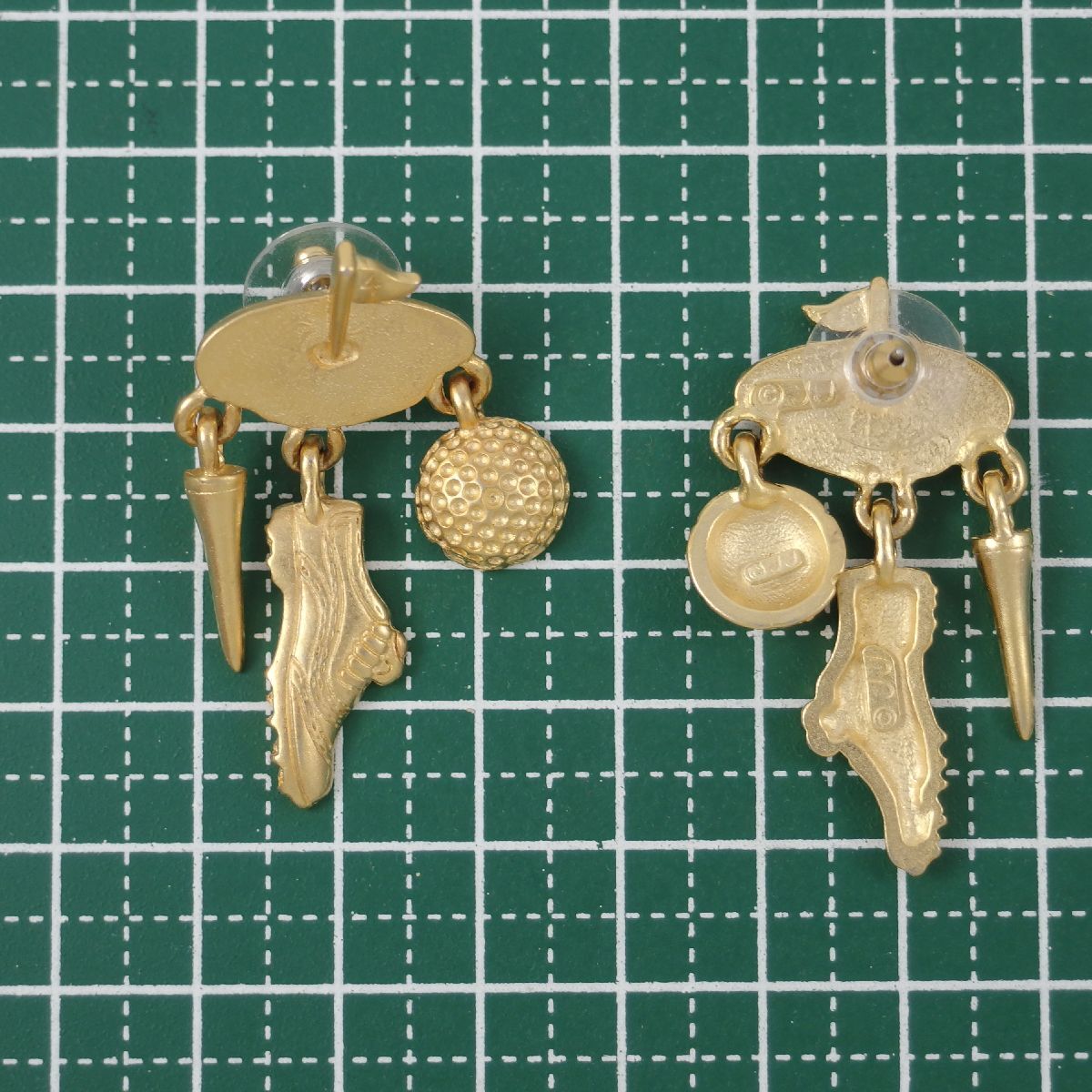A9765◆【JJ】◆ 美品 * ゴルフモチーフ ◆ 3種のチャーム付き 艶消しゴールドトーン ◆ ヴィンテージピアス * イヤリング ◆