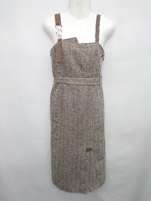 ◇ MURUA ムルーア ヘリンボーン サイドジップ 膝下丈 キャミソール ワンピース サイズS ブラウン ベージュ系 レディース P