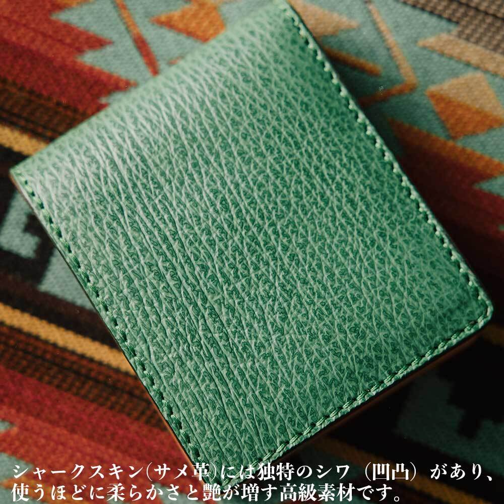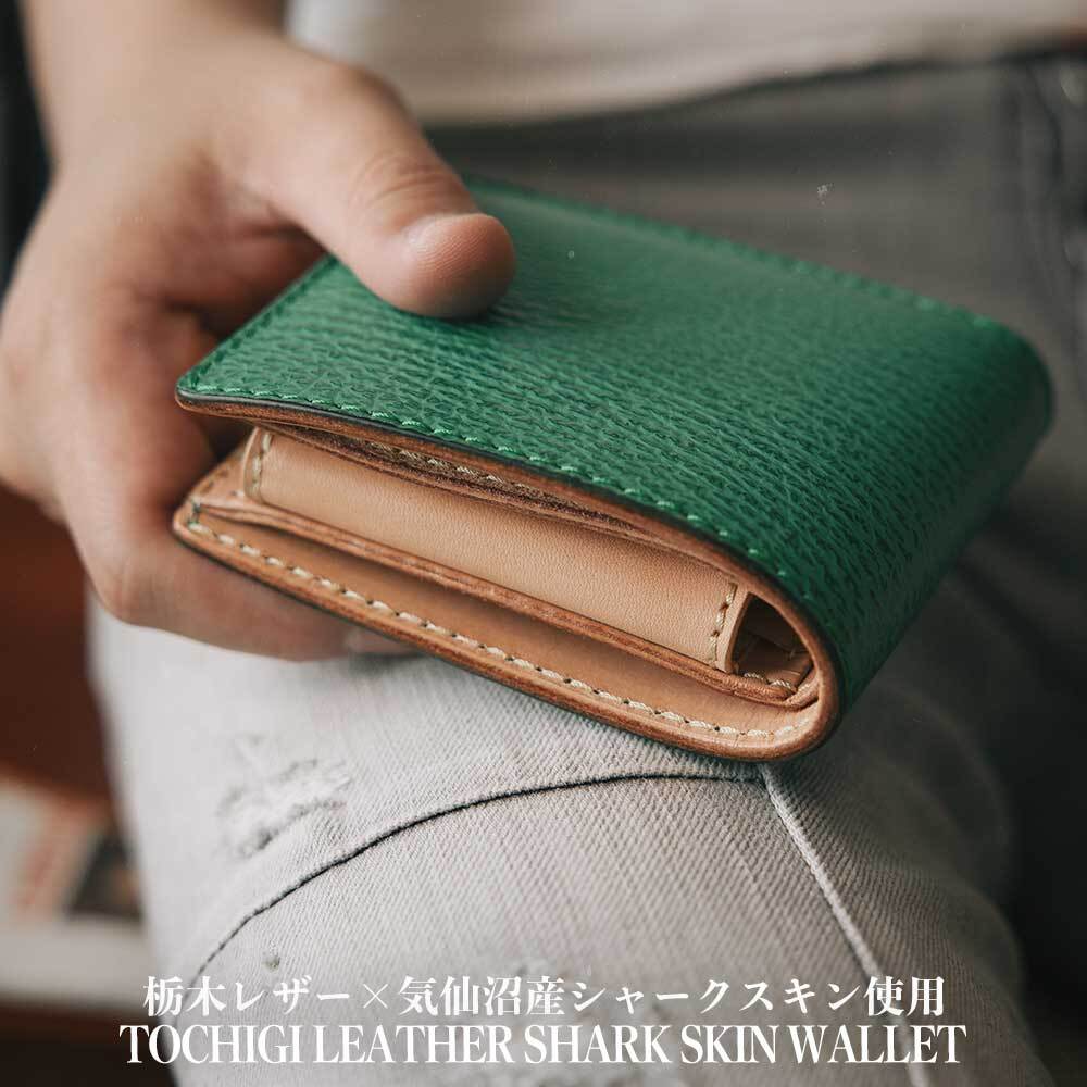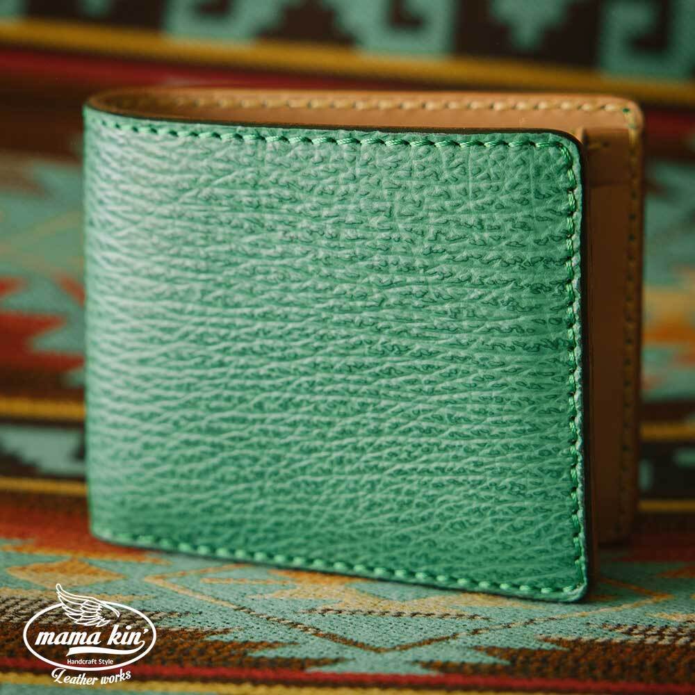 シャークスキン/栃木レザー/サメ革/サドルレザー/ヌメ革/レザーウォレット/二つ折り財布/dl009sh46gr