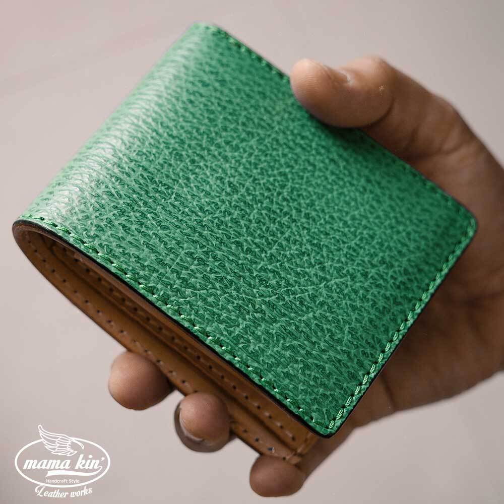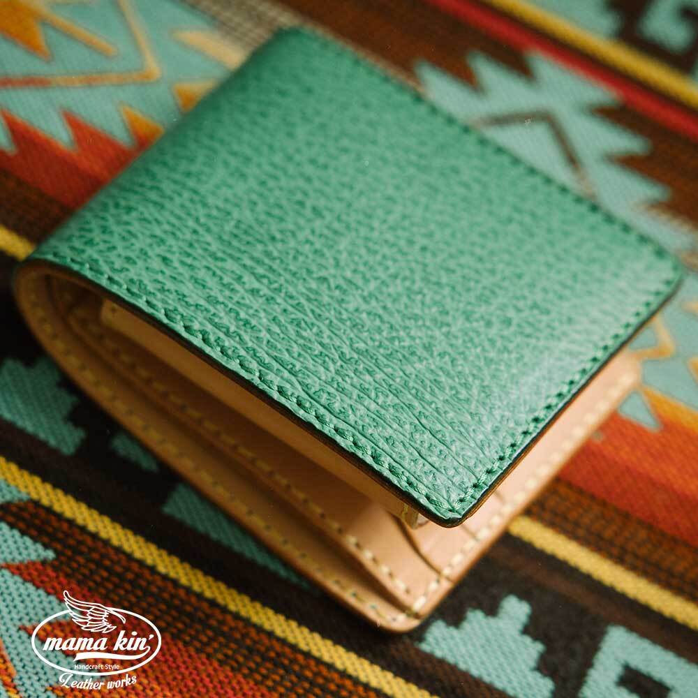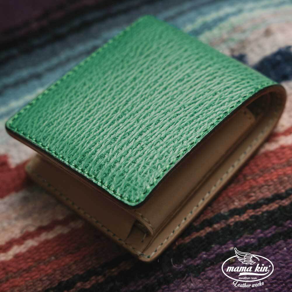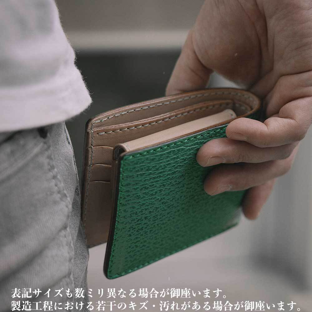 シャークスキン/栃木レザー/サメ革/サドルレザー/ヌメ革/レザーウォレット/二つ折り財布/dl009sh46gr