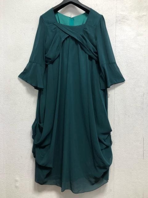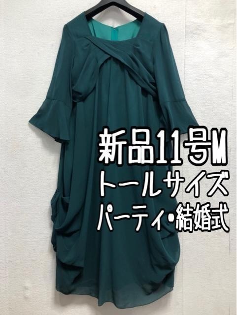 新品☆11号Mトールサイズ♪グリーン系♪デザインワンピ透け感おしゃれ☆r932